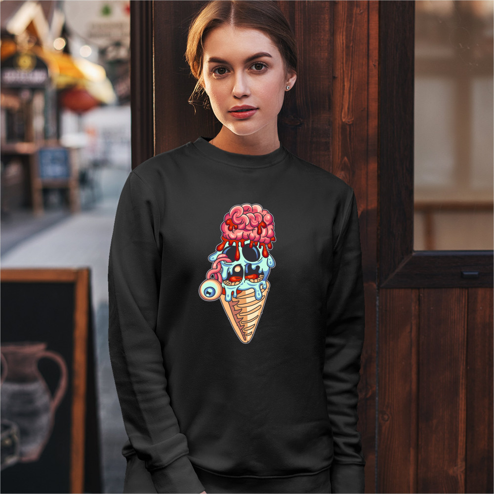 UNDEAD ZOMBIE ICE CREAM sweatshirt happy halloween eat brains crewneck black