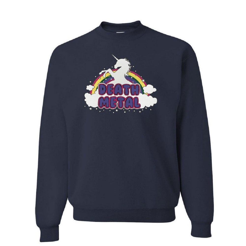UNICORN DEATH METAL sweatshirt rainbow hilarious cute heavy music sweater navy blue