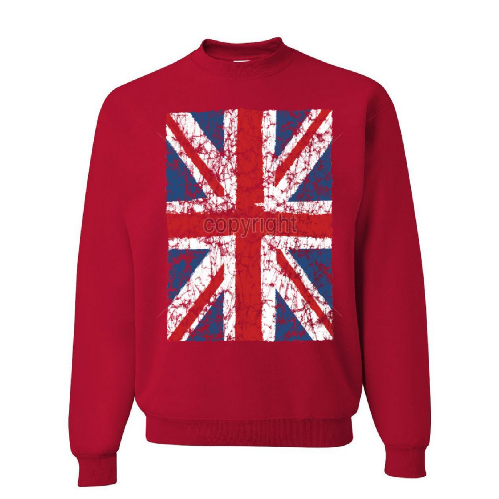 UNION JACK crew neck sweatshirt united kingdom distressed british flag red