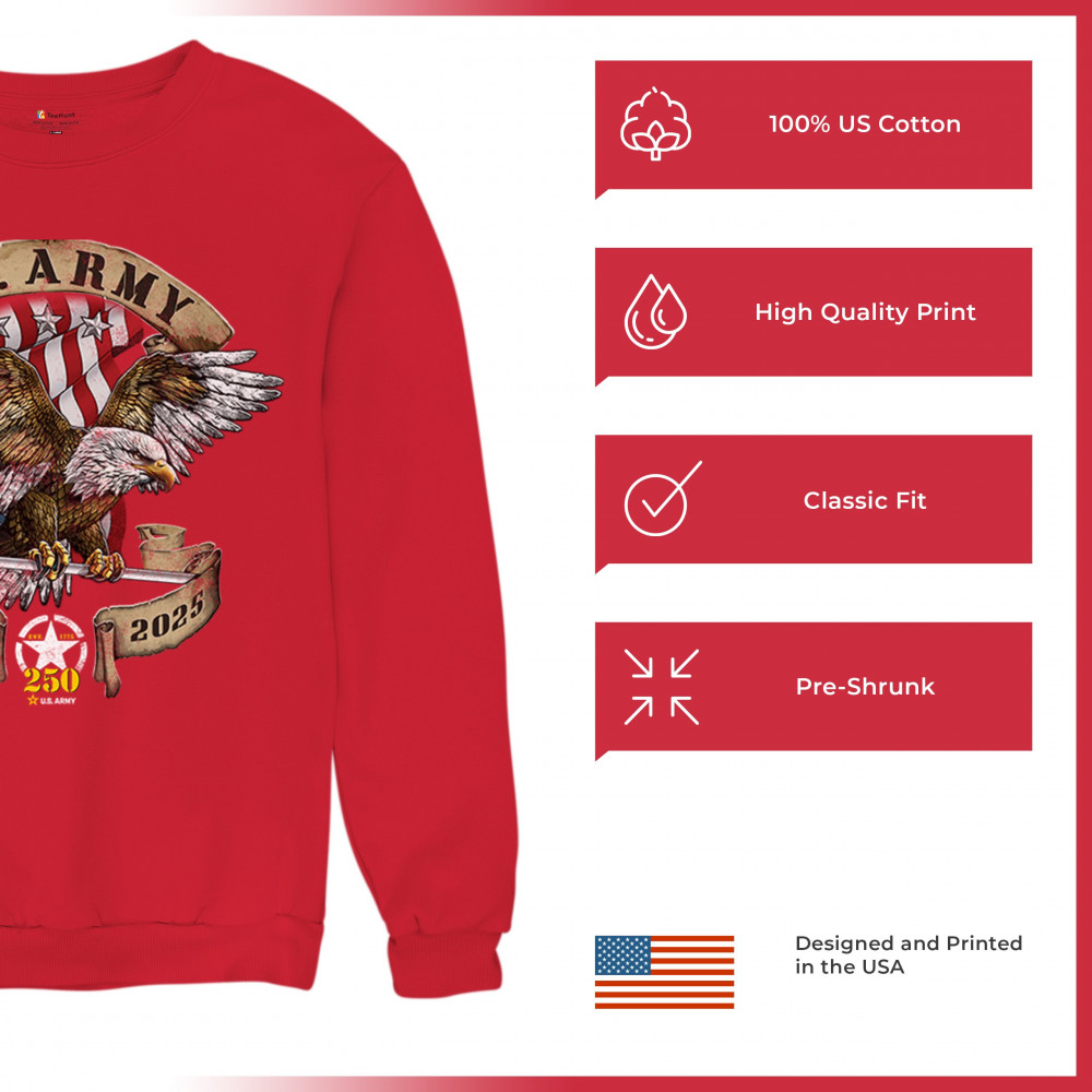 Celebrate the U.S. Army’s 250th Anniversary with patriotic eagle art, Army apparel, Veterans Day pride, and American freedom tribute.