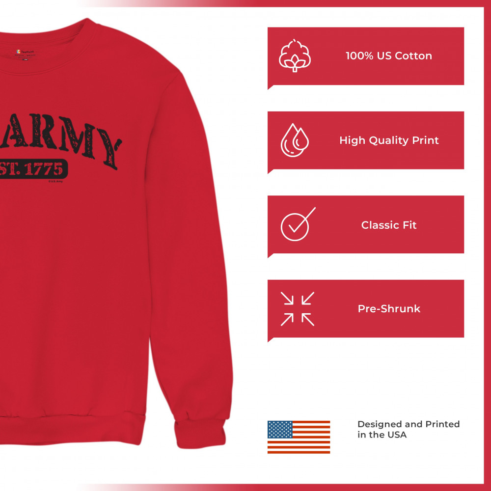 Our licensed U.S. Army design is a testament to the indomitable spirit of American service. It's a tribute to the valorous life and resilient history of those who've worn the uniform. This apparel honors every veteran's sacrifice and embodies the pride of military families. With each thread, feel the readiness and strength of our armed forces, and join in the patriotic celebration of our soldiers' duty and combat spirit.