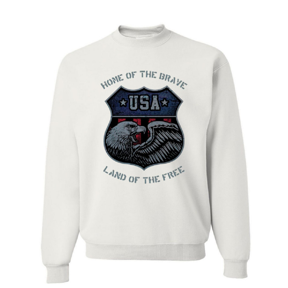 USA SHIELD PATRIOTIC sweatshirt home of the brave land of the free sweater white