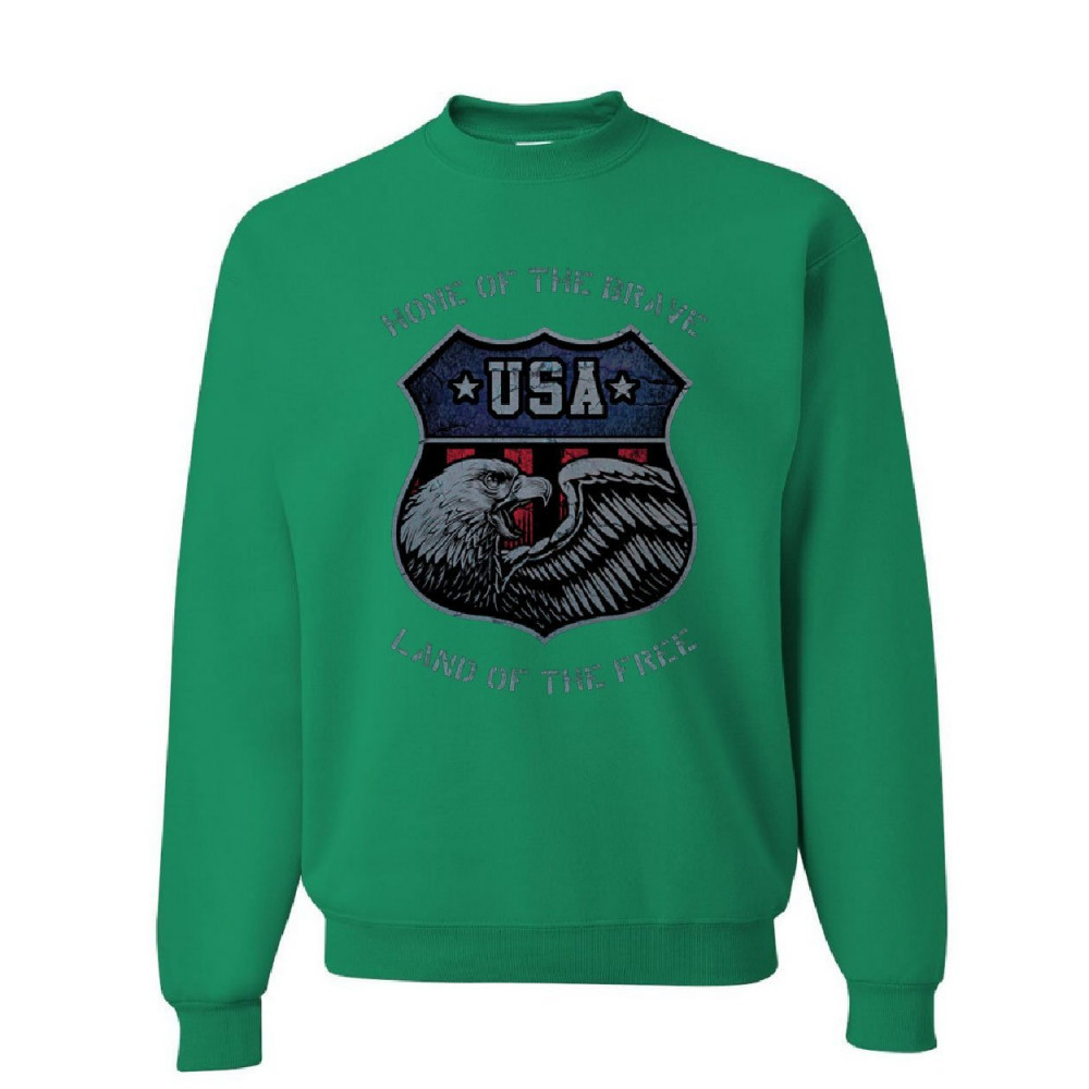 USA SHIELD PATRIOTIC sweatshirt home of the brave land of the free sweater green