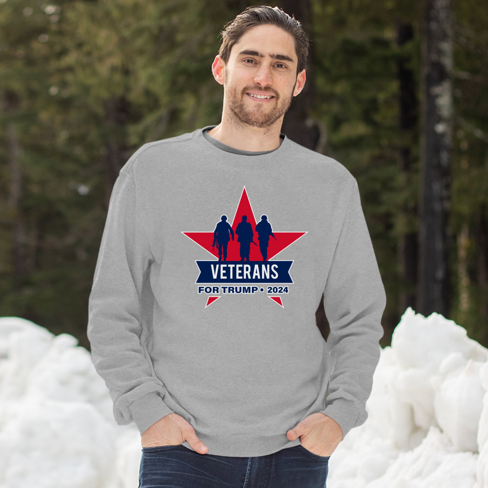 VETERANS FOR TRUMP 2024 sweatshirt keep america great maga military crewneck gray