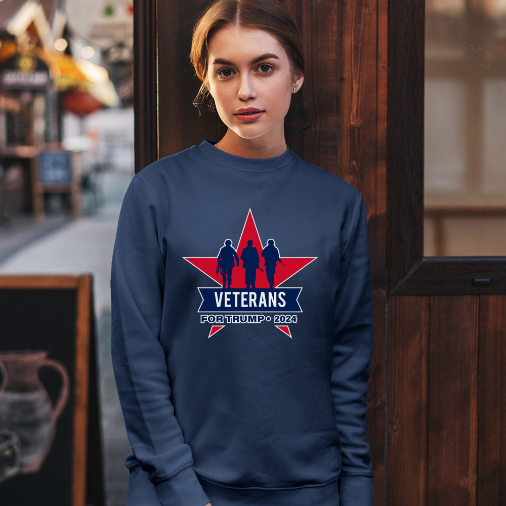 VETERANS FOR TRUMP 2024 sweatshirt keep america great maga military crewneck navy blue