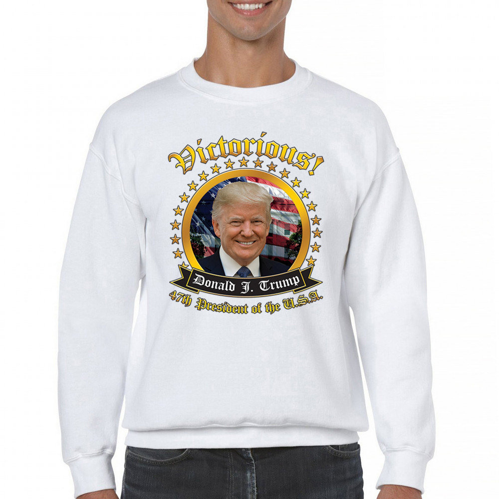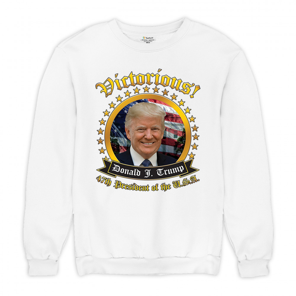 The "Victorious" design captures the spirit of Donald J. Trump’s victory as the 47th President, embodying the pride and patriotism of true American supporters. With elements of the American flag and an inspiring message, it’s a perfect symbol for Republicans, conservatives, and America First advocates. Celebrate the Red Wave and stand for a strong, united nation. Perfect for showing support at rallies, gatherings, or casual wear.