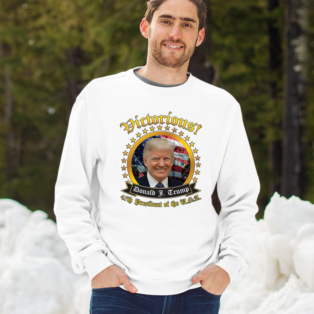 Showcase your support for Trump as the 47th President with this "Victorious" design. Perfect for patriots, America First advocates, and Red Wave supporters.