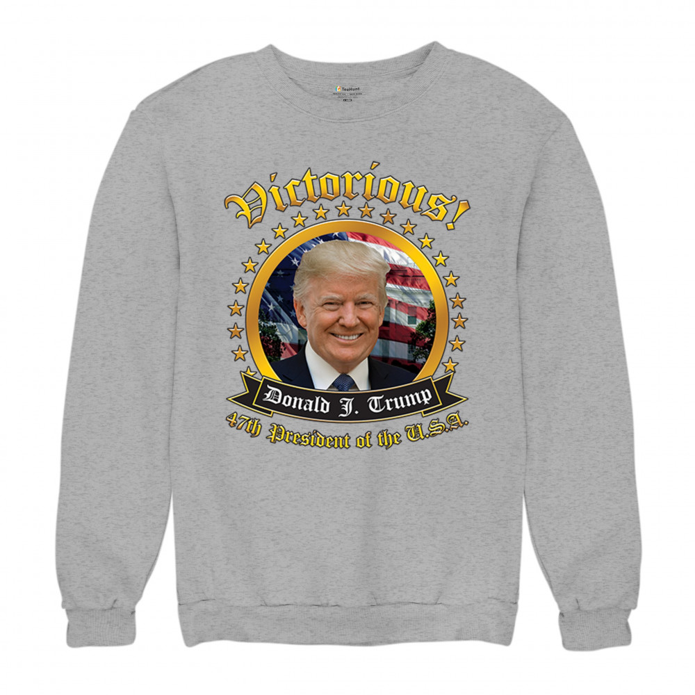 The "Victorious" design captures the spirit of Donald J. Trump’s victory as the 47th President, embodying the pride and patriotism of true American supporters. With elements of the American flag and an inspiring message, it’s a perfect symbol for Republicans, conservatives, and America First advocates. Celebrate the Red Wave and stand for a strong, united nation. Perfect for showing support at rallies, gatherings, or casual wear.
