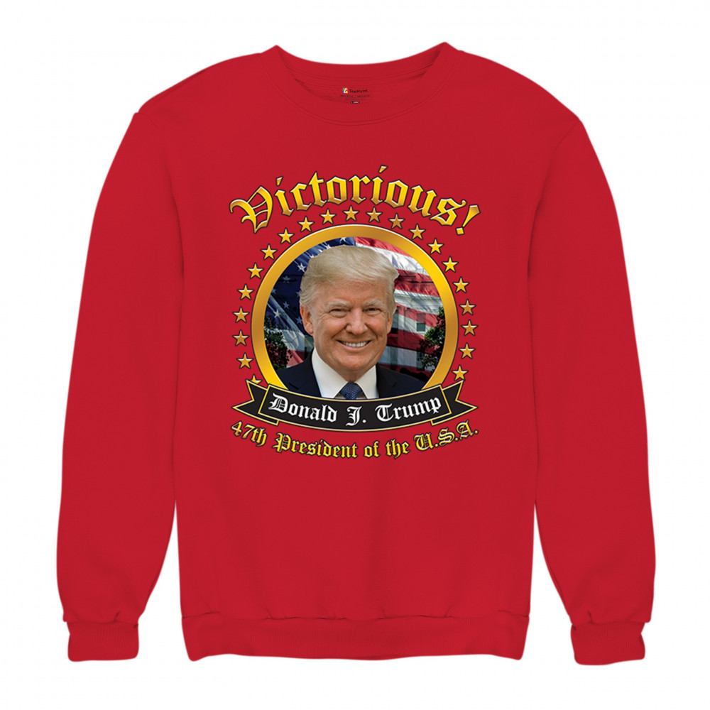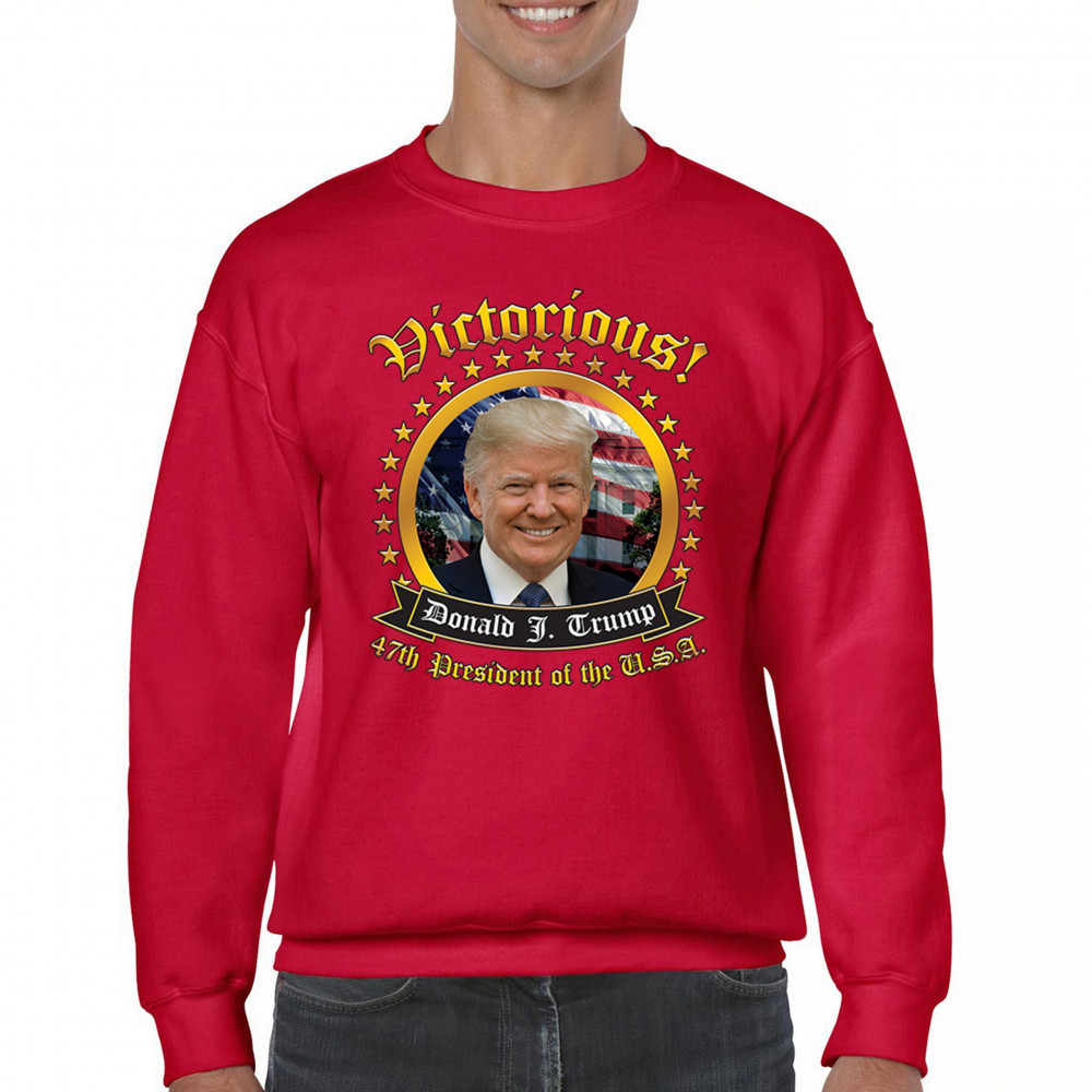 The "Victorious" design captures the spirit of Donald J. Trump’s victory as the 47th President, embodying the pride and patriotism of true American supporters. With elements of the American flag and an inspiring message, it’s a perfect symbol for Republicans, conservatives, and America First advocates. Celebrate the Red Wave and stand for a strong, united nation. Perfect for showing support at rallies, gatherings, or casual wear.