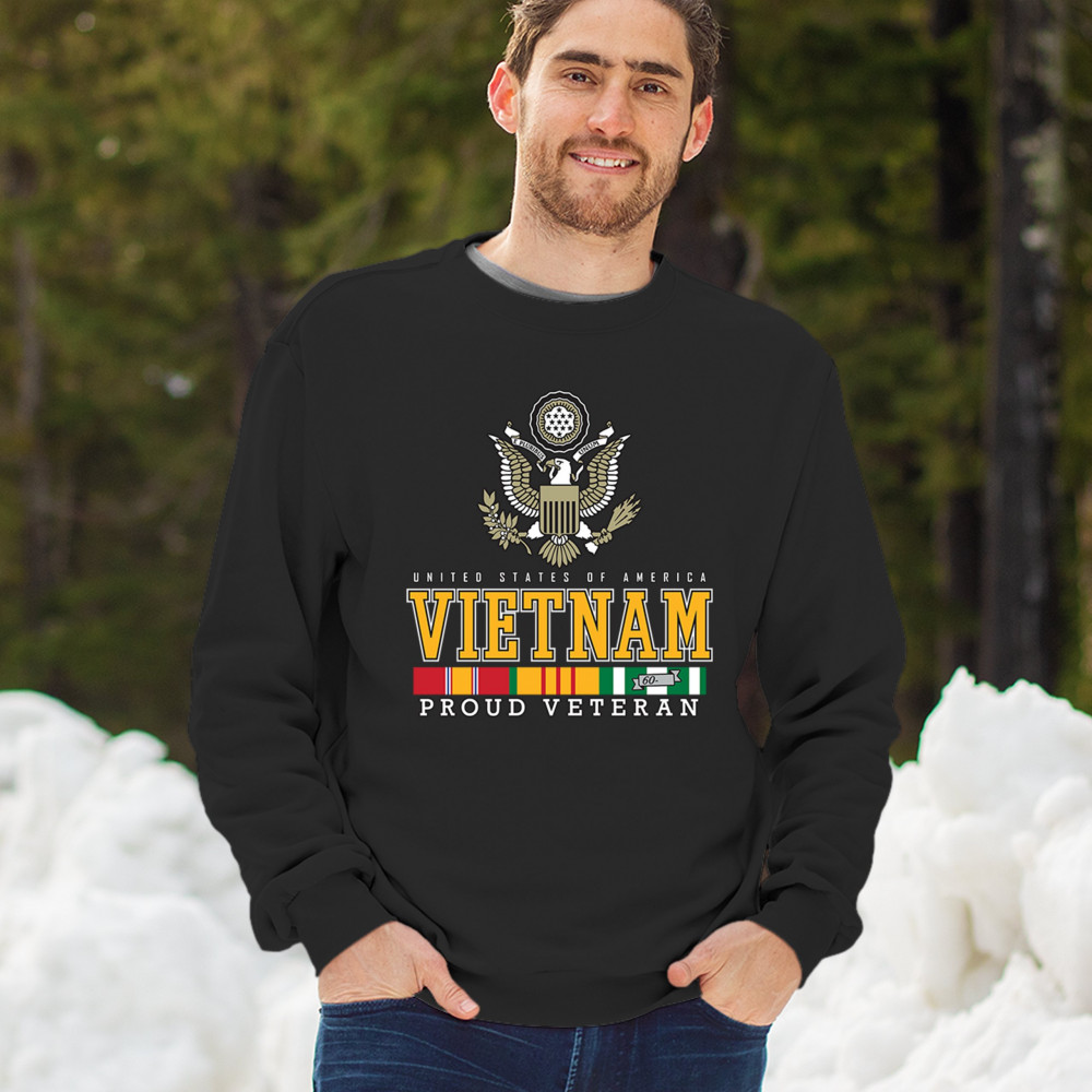 VIETNAM WAR PROUD VETERAN vietnam proud veteran sweatshirt american army vet dd 214 patriot crewneck black
