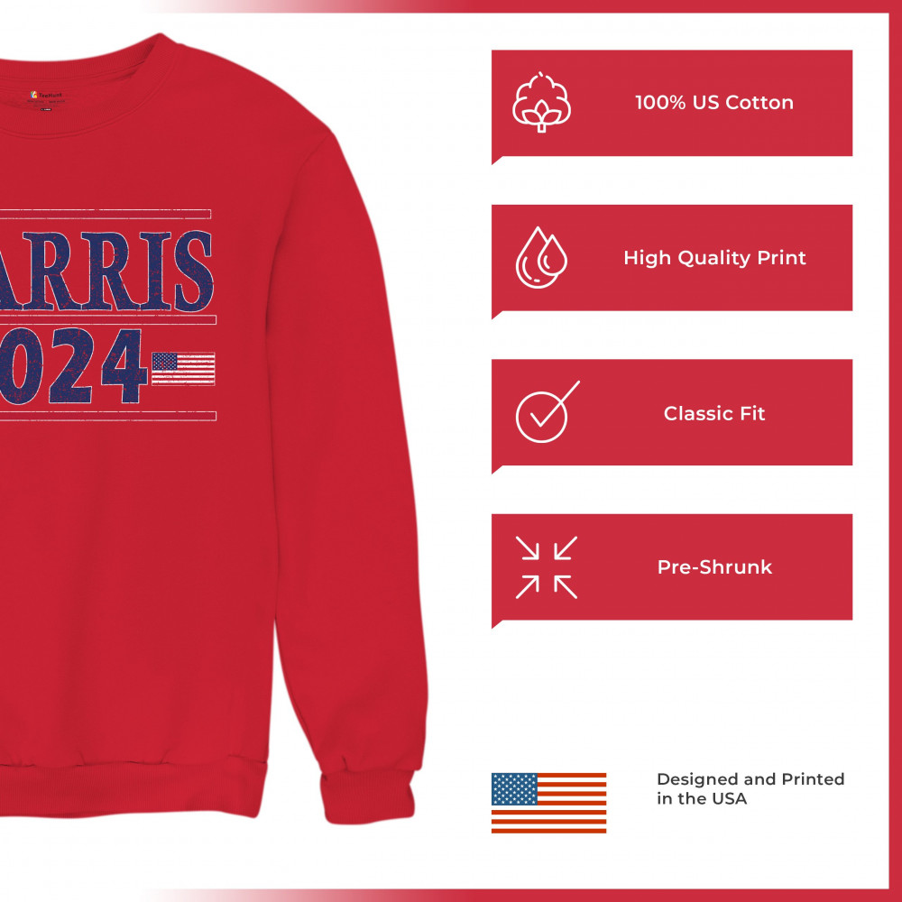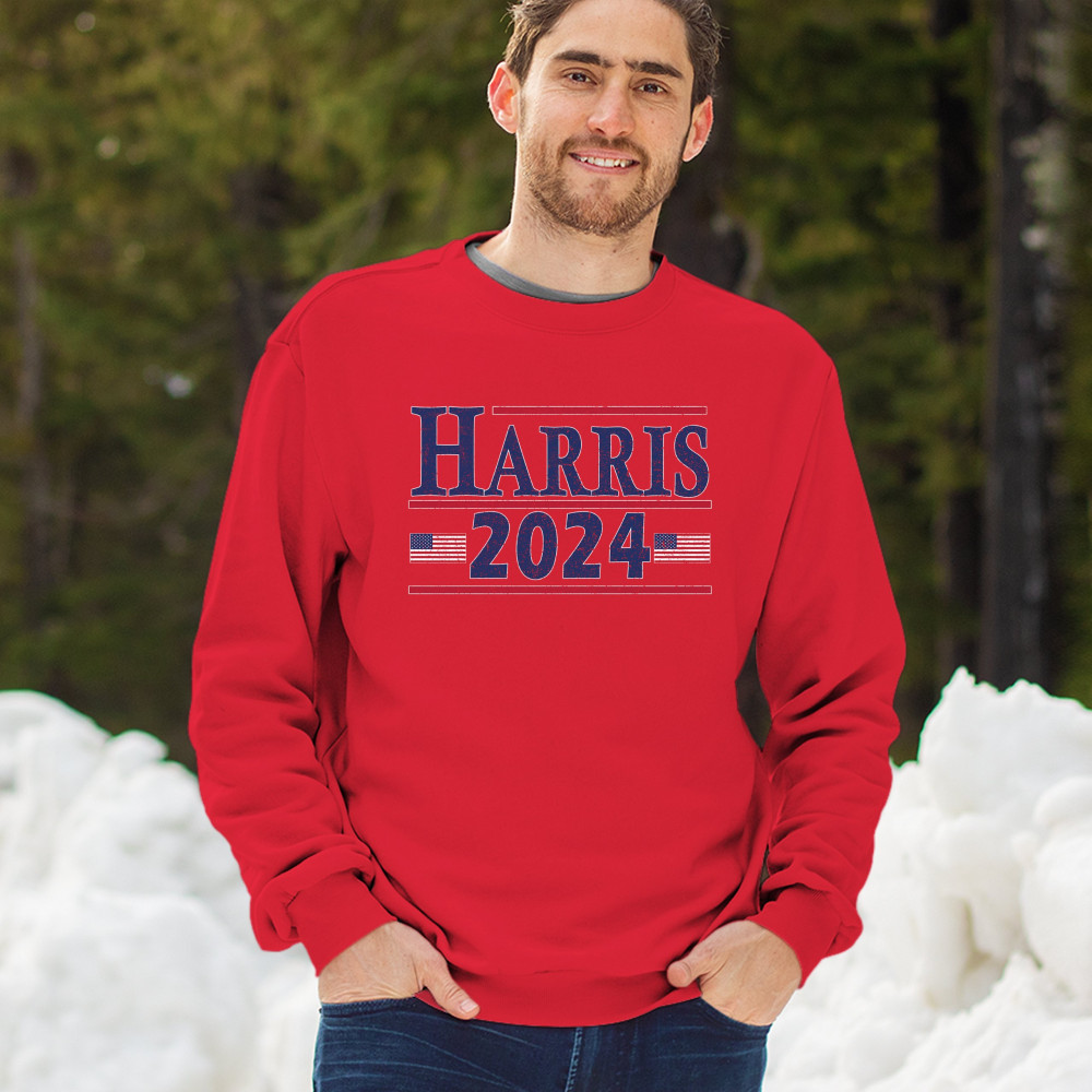 Show your support for Kamala Harris with this bold "Harris 2024" t-shirt, featuring American flags. Perfect for rallies and events. Join the movement today!