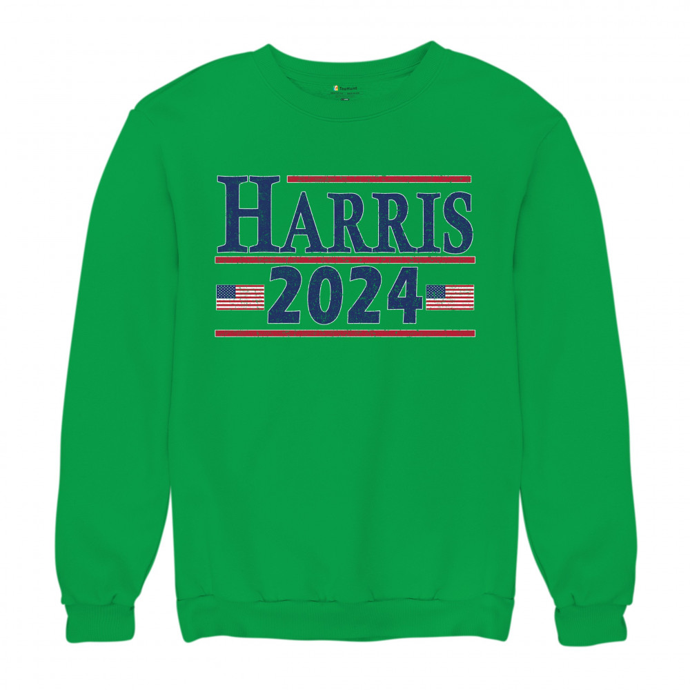 Show your support for Kamala Harris with this bold "Harris 2024" t-shirt, featuring American flags. Perfect for rallies and events. Join the movement today!