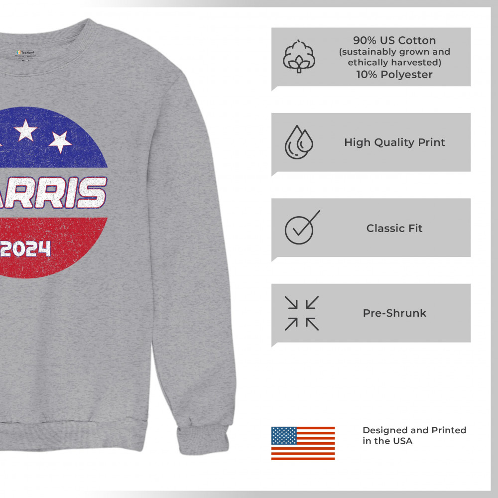 Support Kamala Harris 2024 with this patriotic design featuring the American flag and bold text. Perfect for rallies and political events, it celebrates diversity and inclusivity.