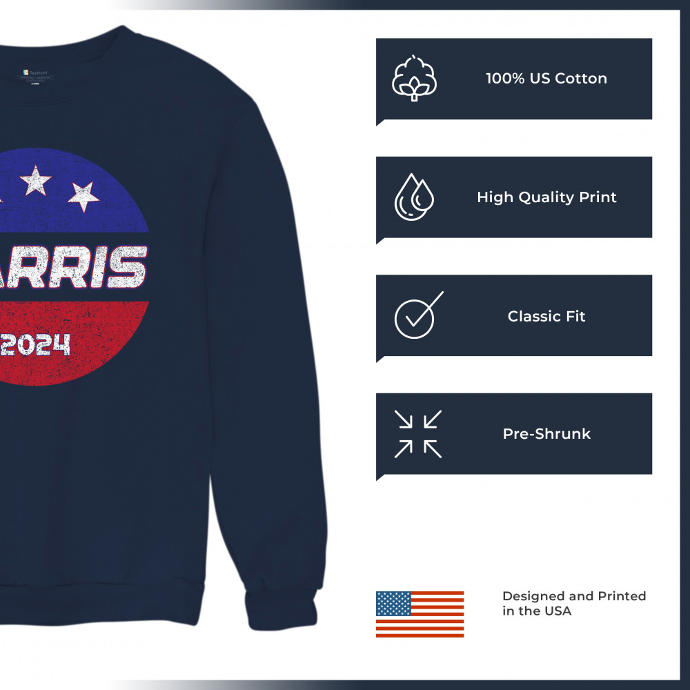 Support Kamala Harris 2024 with this patriotic design featuring the American flag and bold text. Perfect for rallies and political events, it celebrates diversity and inclusivity.