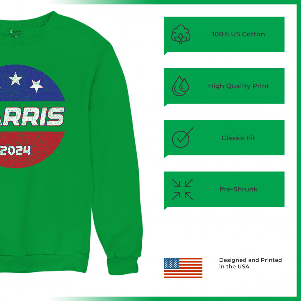 Support Kamala Harris 2024 with this patriotic design featuring the American flag and bold text. Perfect for rallies and political events, it celebrates diversity and inclusivity.