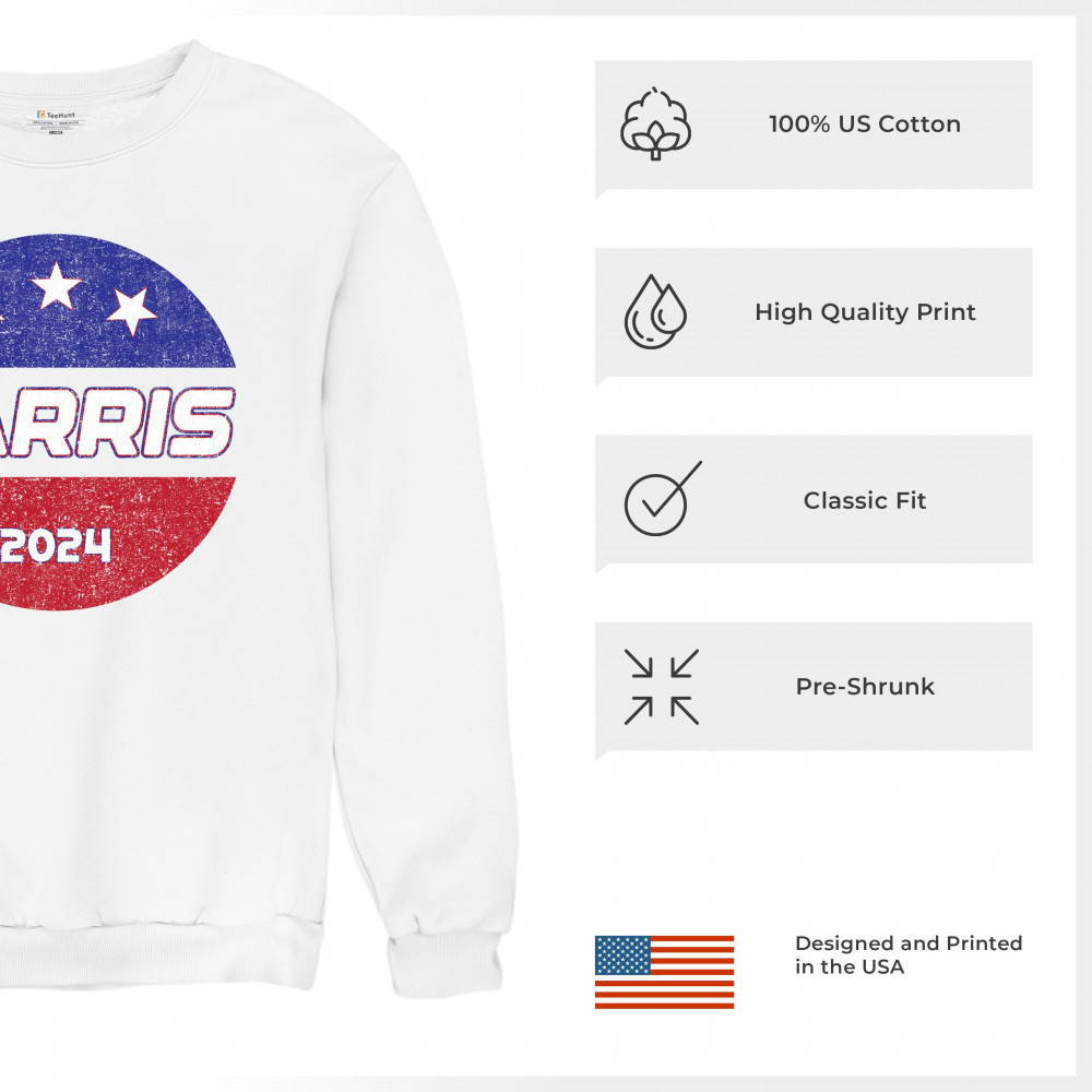 Support Kamala Harris 2024 with this patriotic design featuring the American flag and bold text. Perfect for rallies and political events, it celebrates diversity and inclusivity.