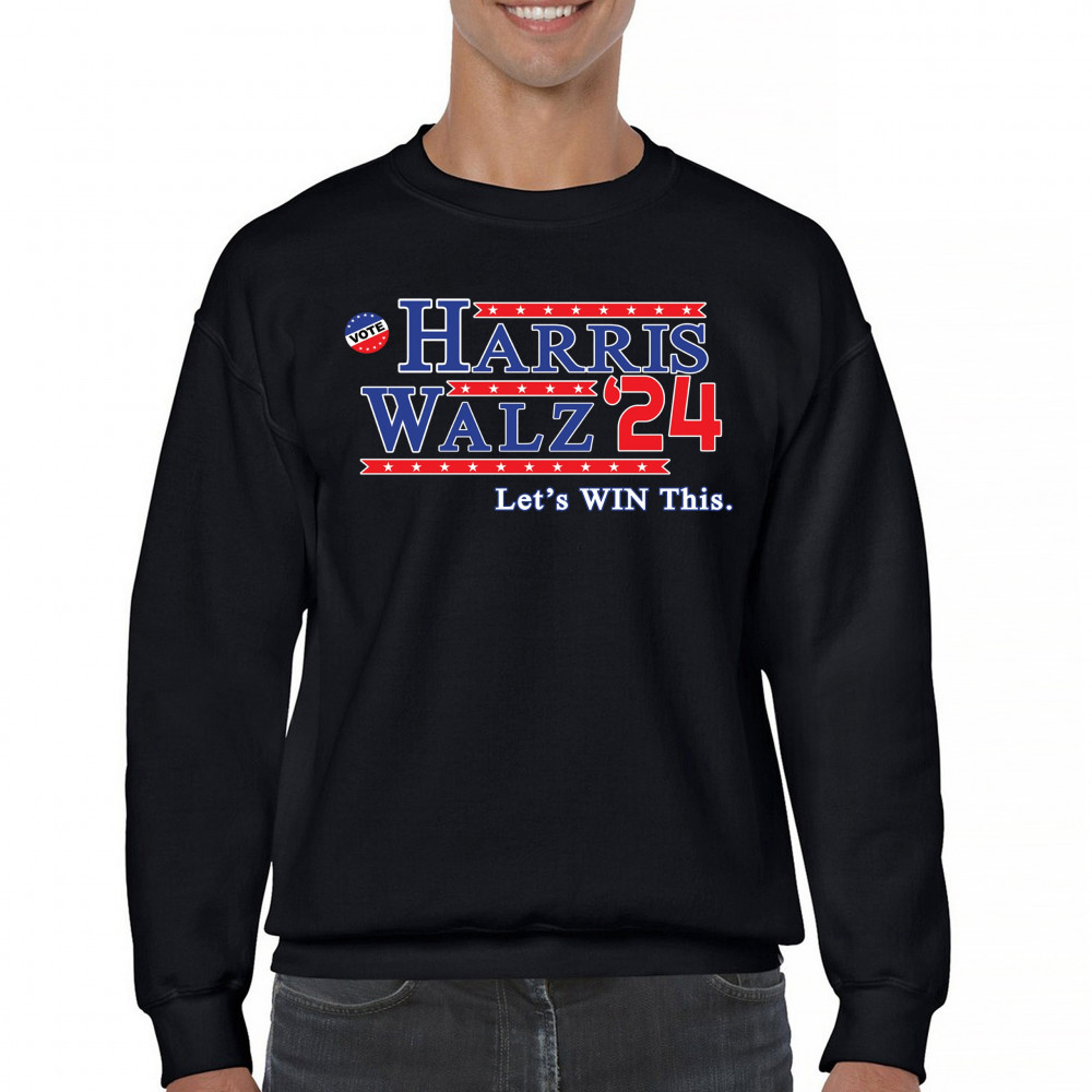 VOTE HARRIS WALZ 2024 sweatshirt president i'm speaking kamala 47 tim crewneck black