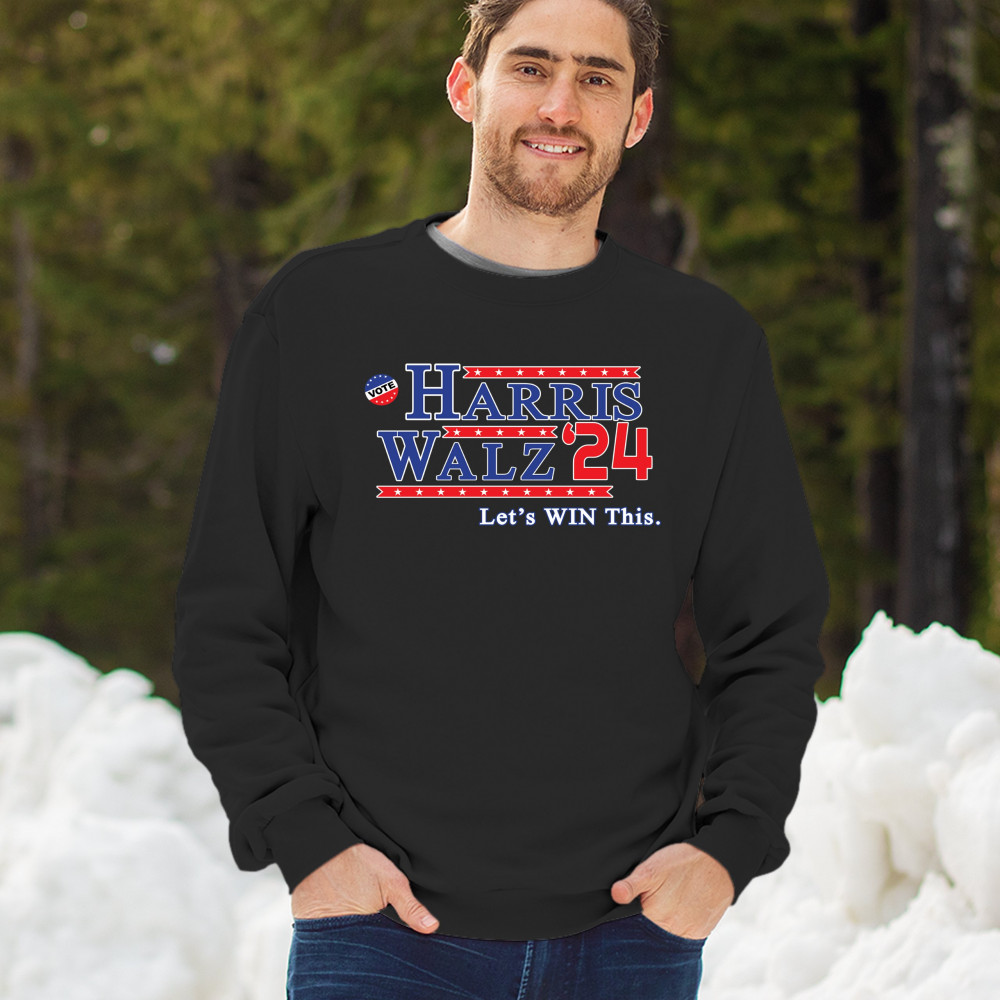 Express your support for Kamala Harris and Tim Walz in the 2024 election with this dynamic and patriotic design. Perfect for rally participants, dedicated supporters, and advocates of liberal values, this design captures the essence of the campaign. Highlighting America First, women's rights, and LGBTQ+ equality, it symbolizes the fight for victory and justice. Trust in government and join the rebelution against conservative agendas. Stand with Kamala and Walz for a brighter future. Let's win this together in 2024. Let's Win This.