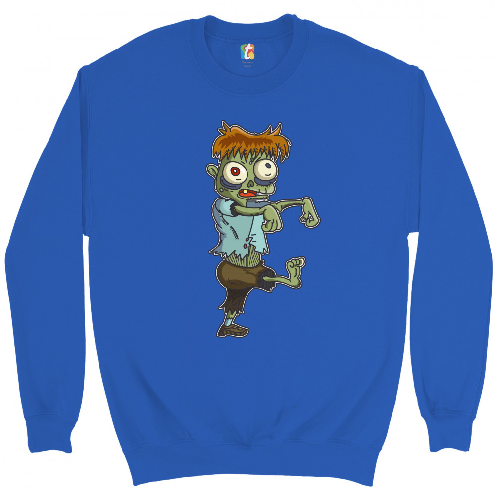 WALKING ZOMBIE sweatshirt eat brains halloween spooky funny undead crewneck royal blue
