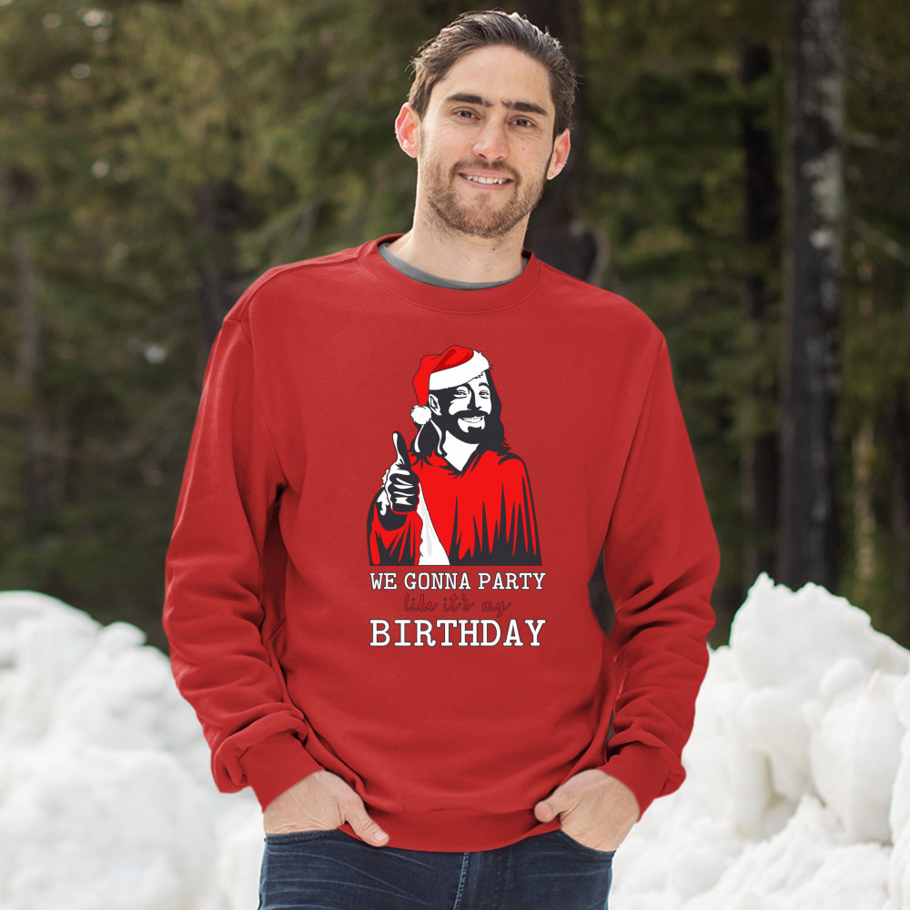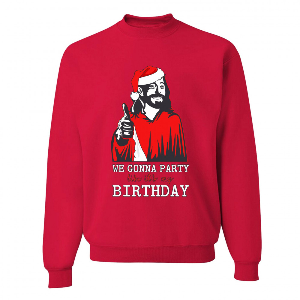 WE GONNA PARTY LIKE IT'S MY BIRTHDAY sweatshirt jesus christ xmas crewneck red