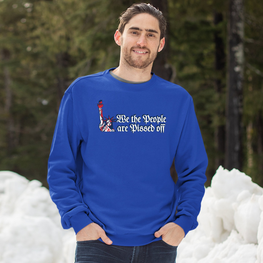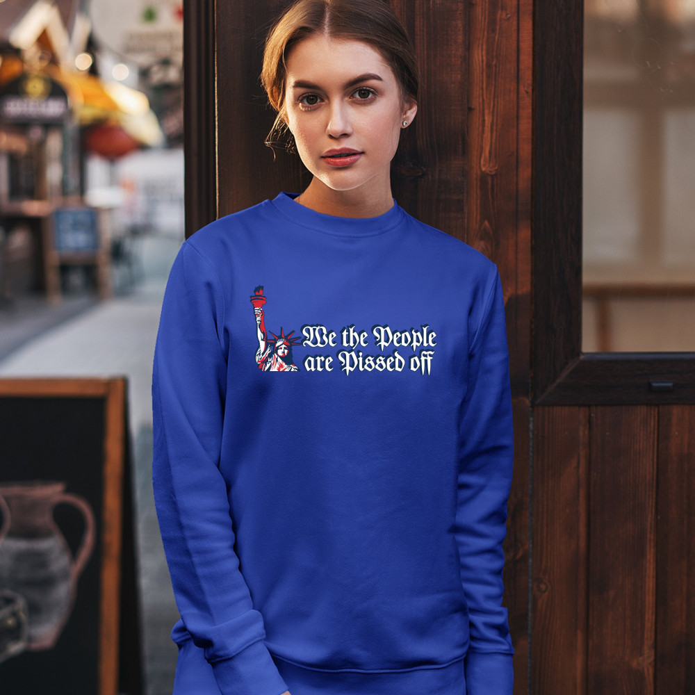 WE THE PEOPLE ARE PISSED OFF sweatshirt statue of liberty patriotic crewneck royal blue