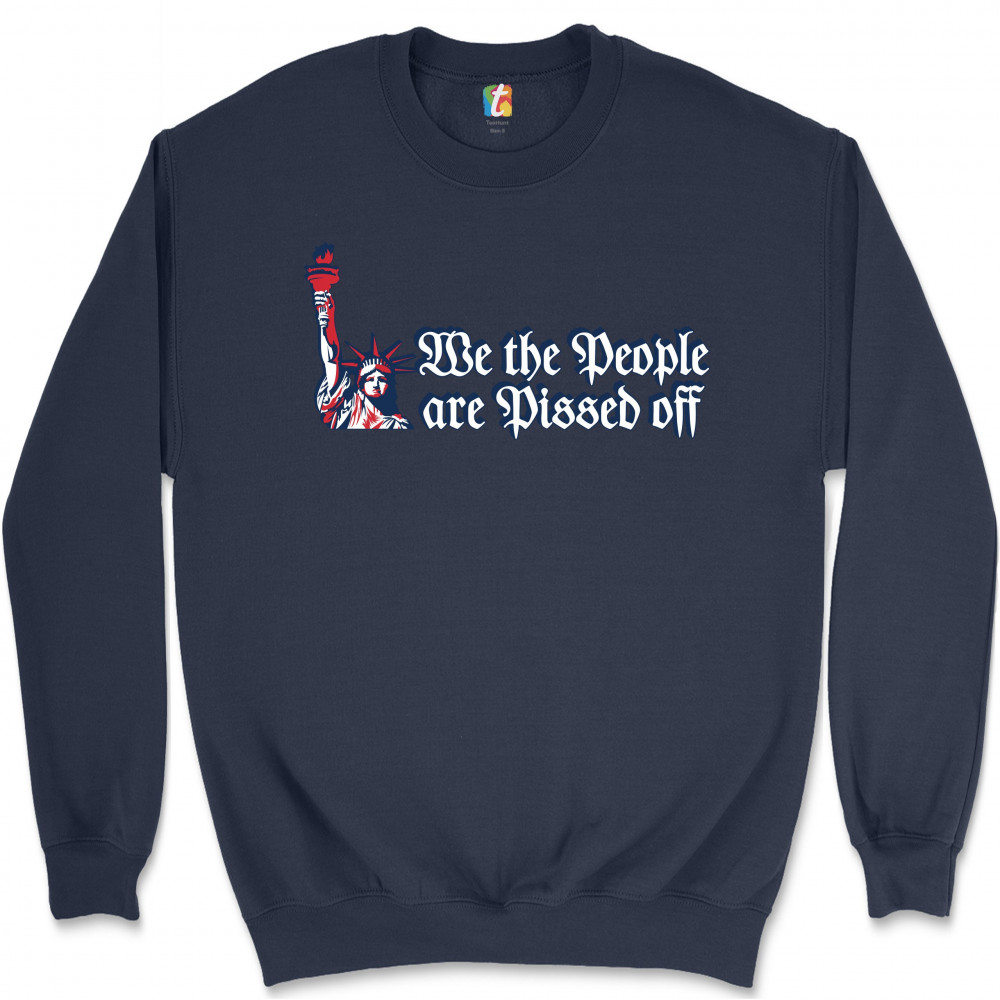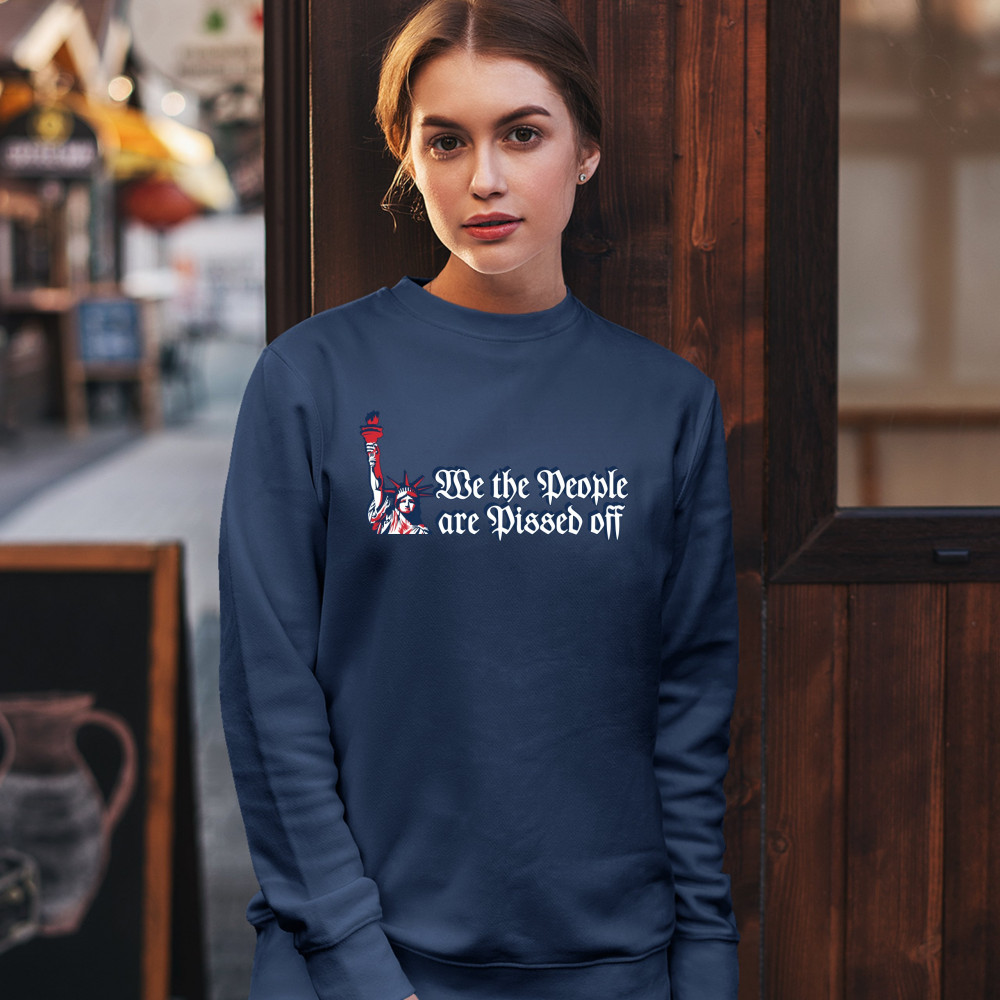 WE THE PEOPLE ARE PISSED OFF sweatshirt statue of liberty patriotic crewneck navy blue
