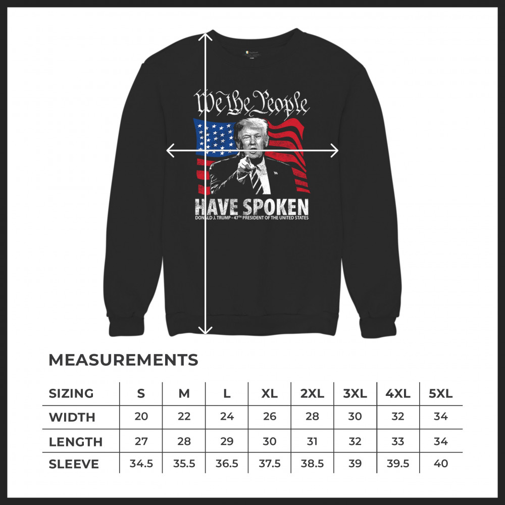 Express your American pride with this impactful "We the People Have Spoken" design, supporting Donald J. Trump as the 47th President of the United States. Ideal for conservative supporters, patriots, and those who stand strong with the American flag and values. This design is for those who believe in America First, the Red Wave, and a powerful Republican stance. Show your commitment and make a statement for a strong America.