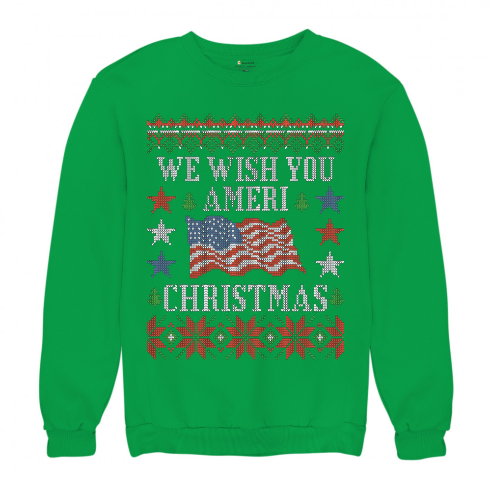WE WISH YOU AMERI CHRISTMAS sweatshirt ugly sweater american flag crewneck green