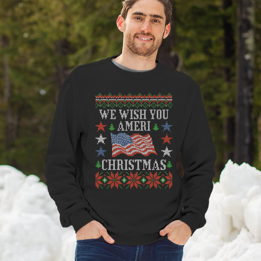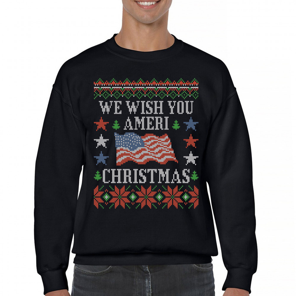 WE WISH YOU AMERI CHRISTMAS sweatshirt ugly sweater american flag crewneck black