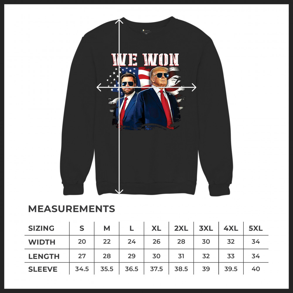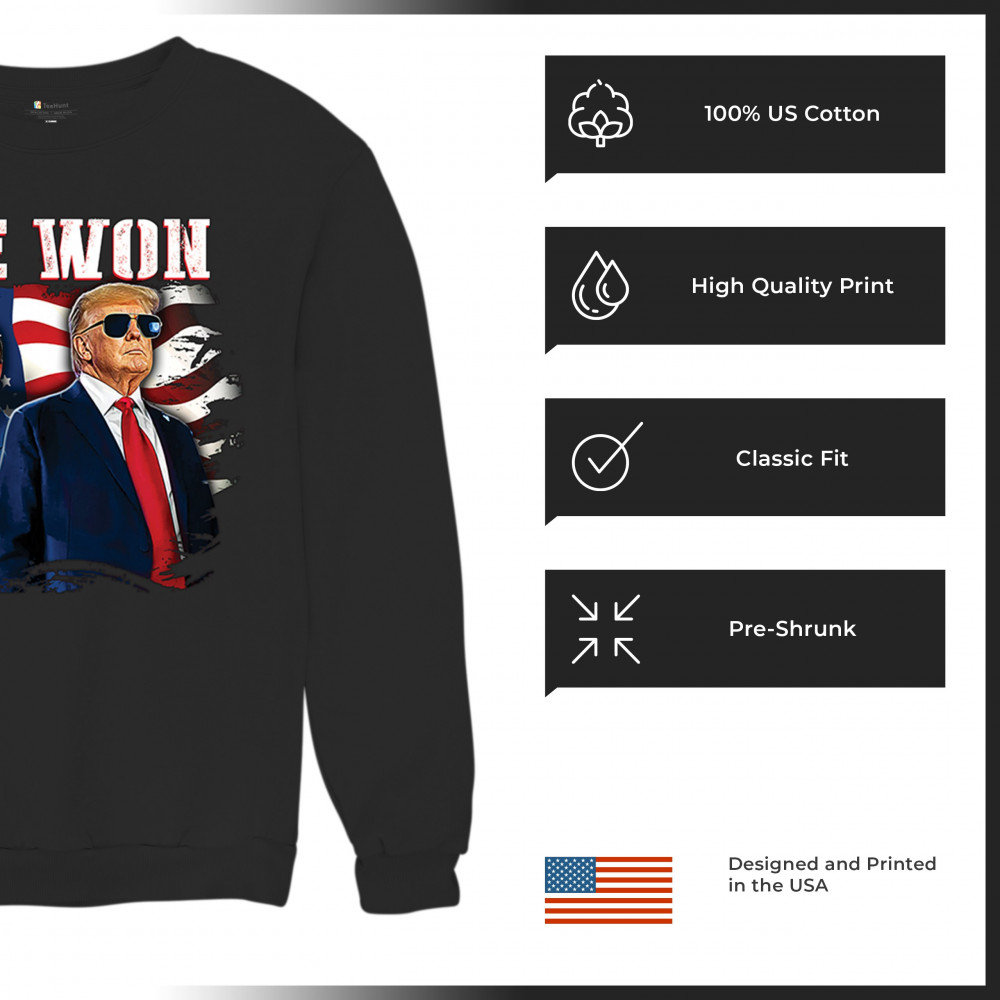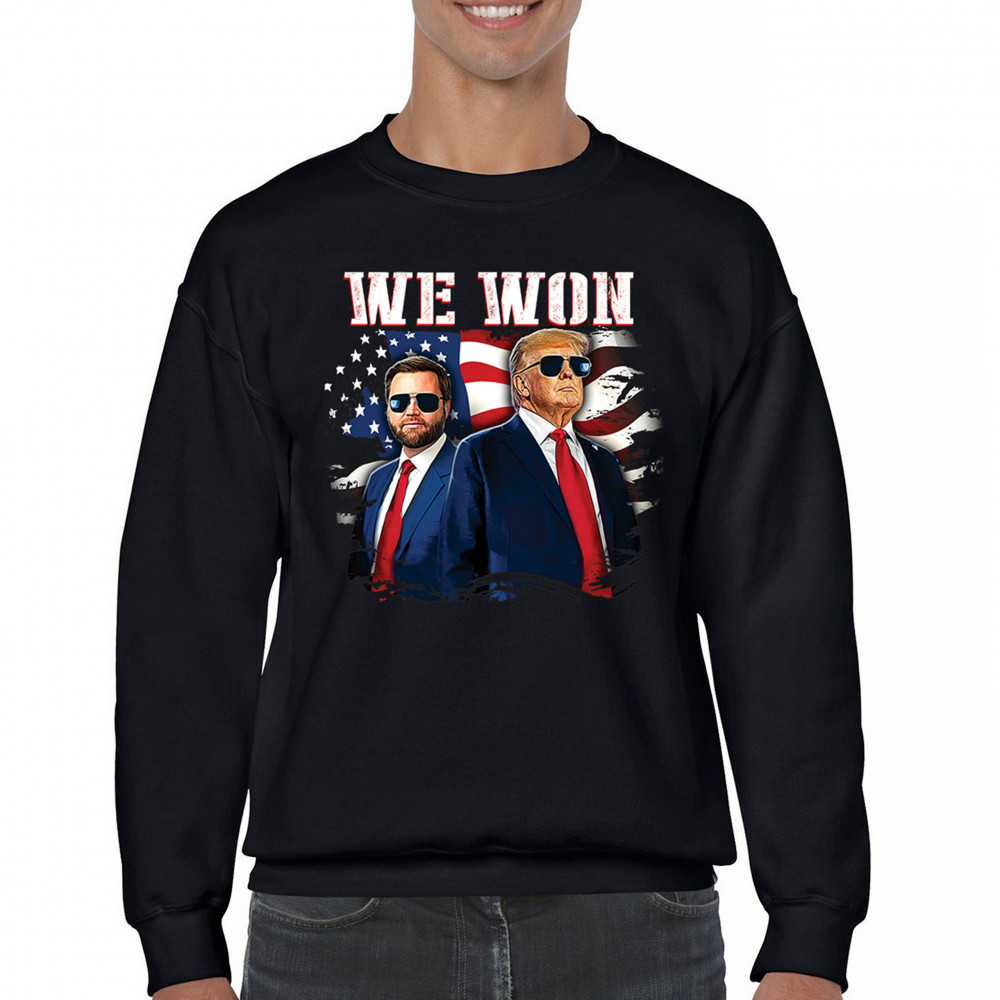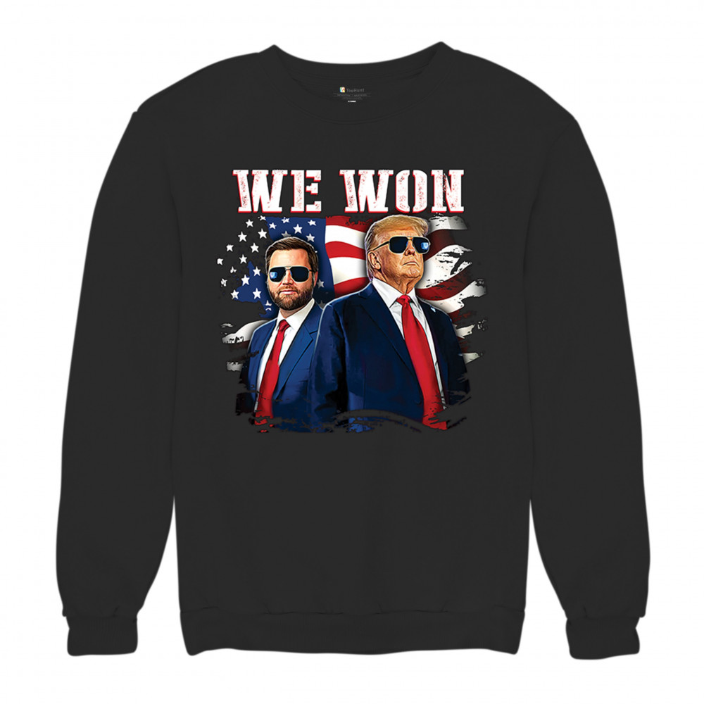 Celebrate Republican victory with this bold "We Won" design featuring Trump and patriotic flair—perfect for rallies, events, and patriotic pride.