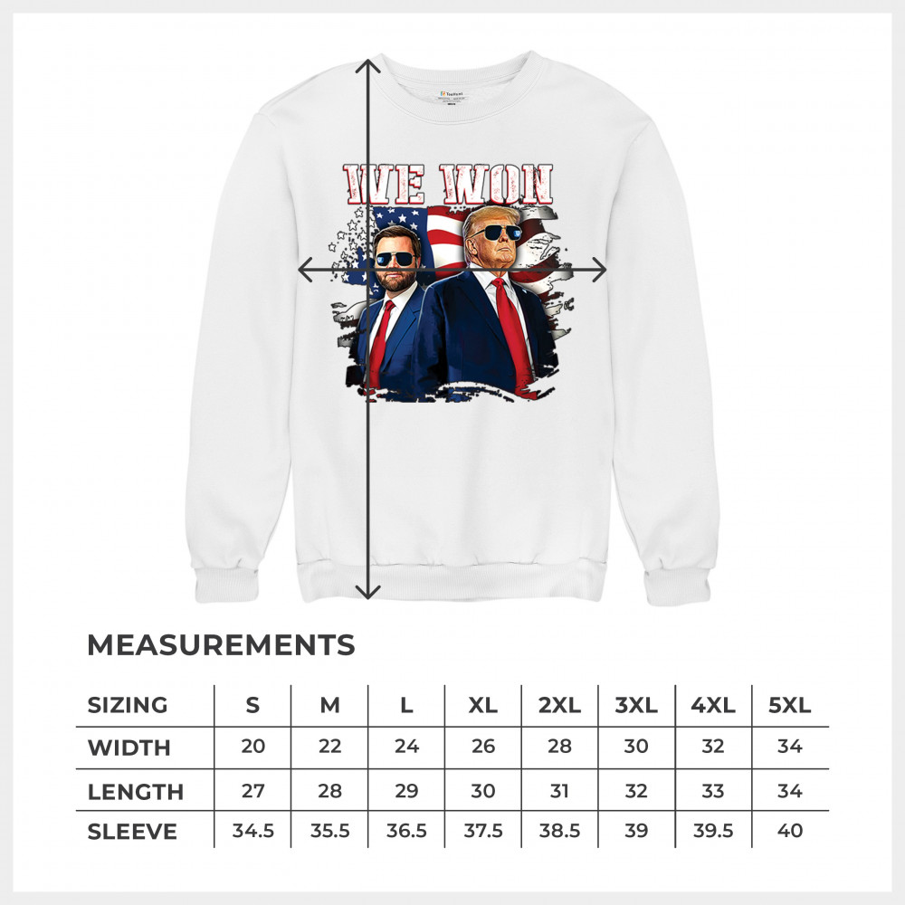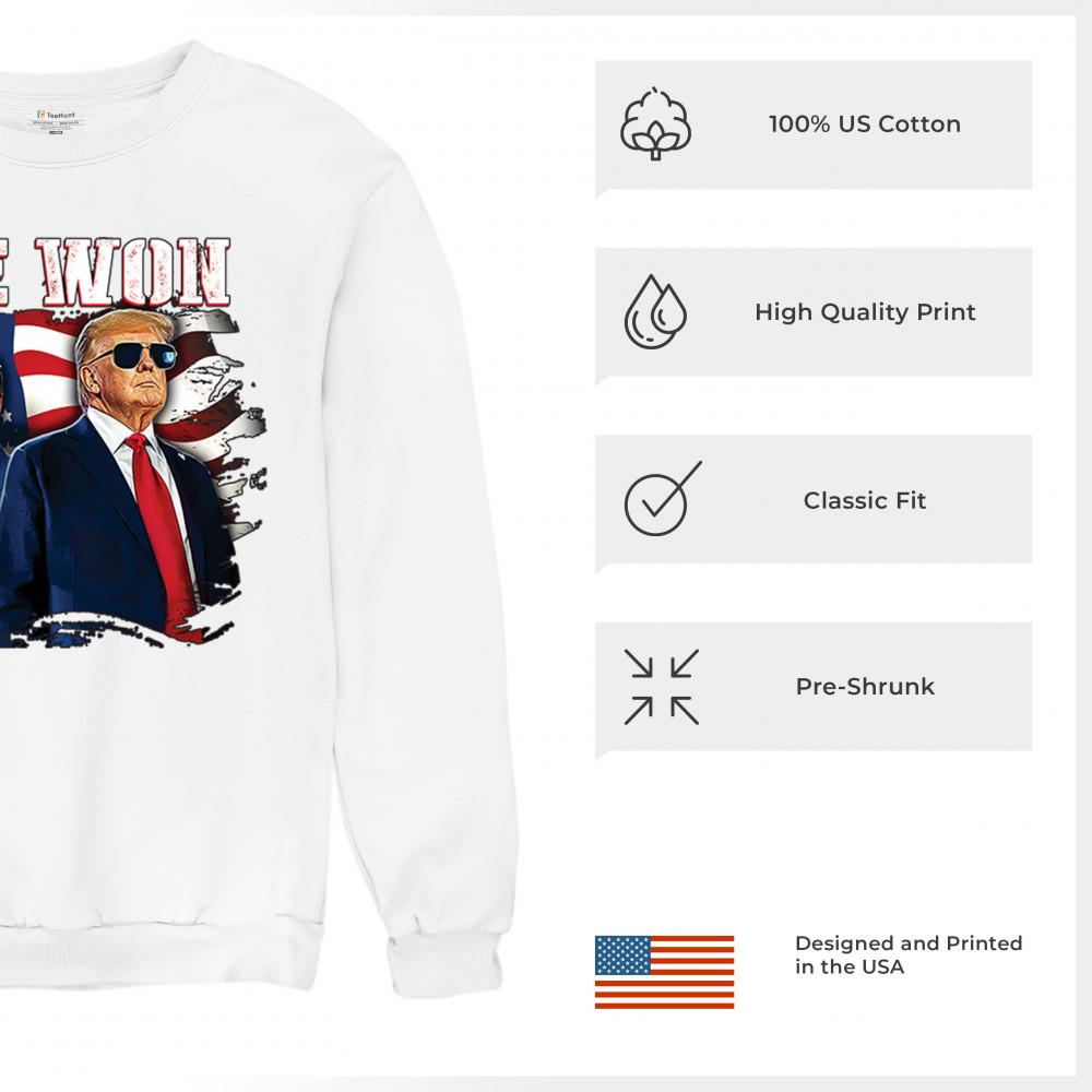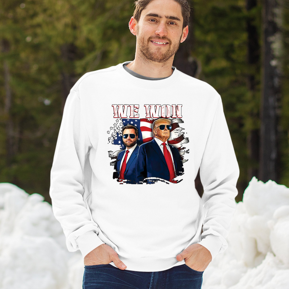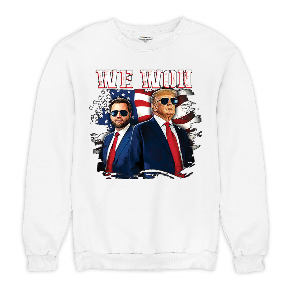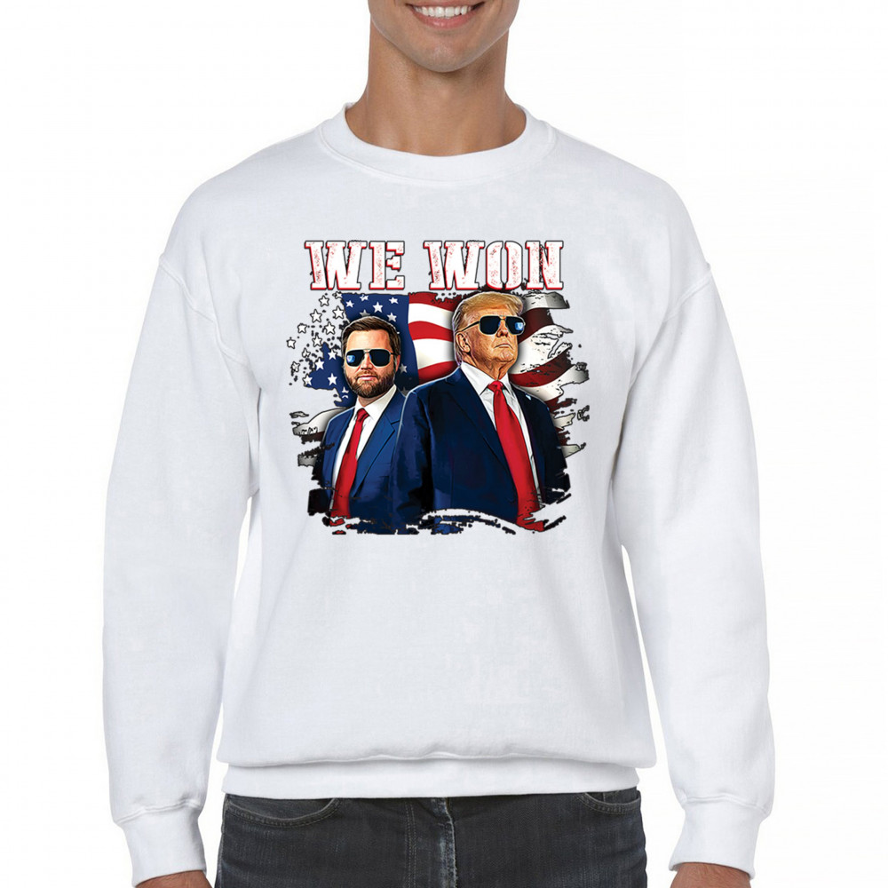 Celebrate Republican victory with this bold "We Won" design featuring Trump and patriotic flair—perfect for rallies, events, and patriotic pride.