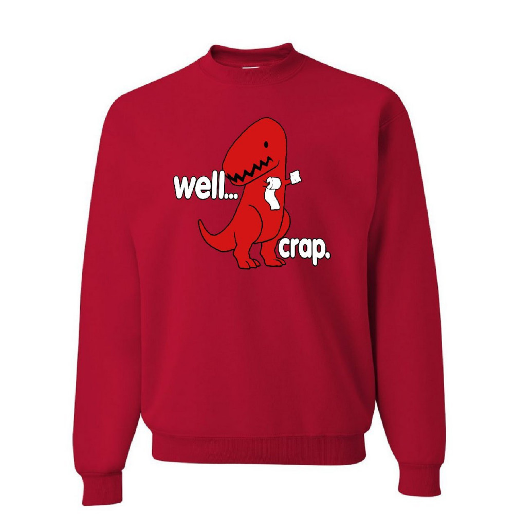 WELL CRAP T-REX well crap sweatshirt funny t-rex fail short hands tyrannosaurus sweater red