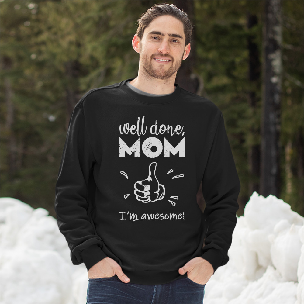 WELL DONE MOM I'M AWESOME sweatshirt mother's day i love you mom mommy crewneck black