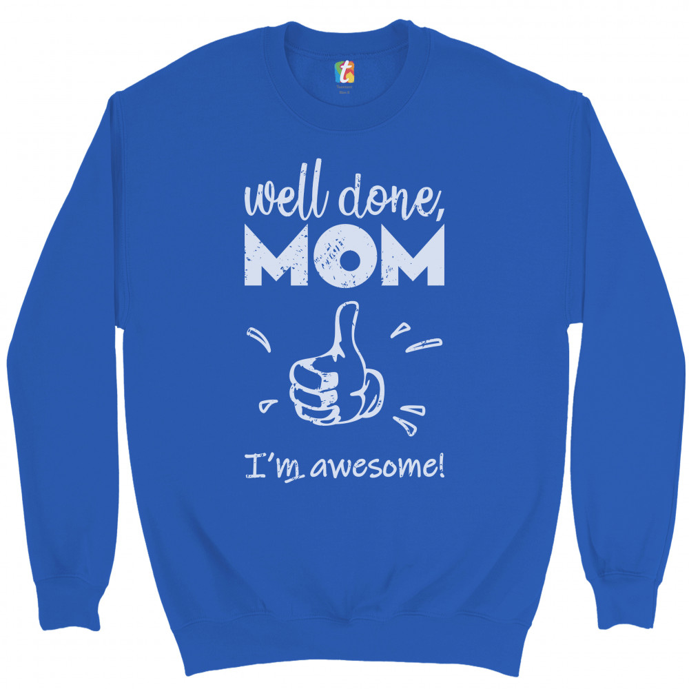 WELL DONE MOM I'M AWESOME sweatshirt mother's day i love you mom mommy crewneck blue