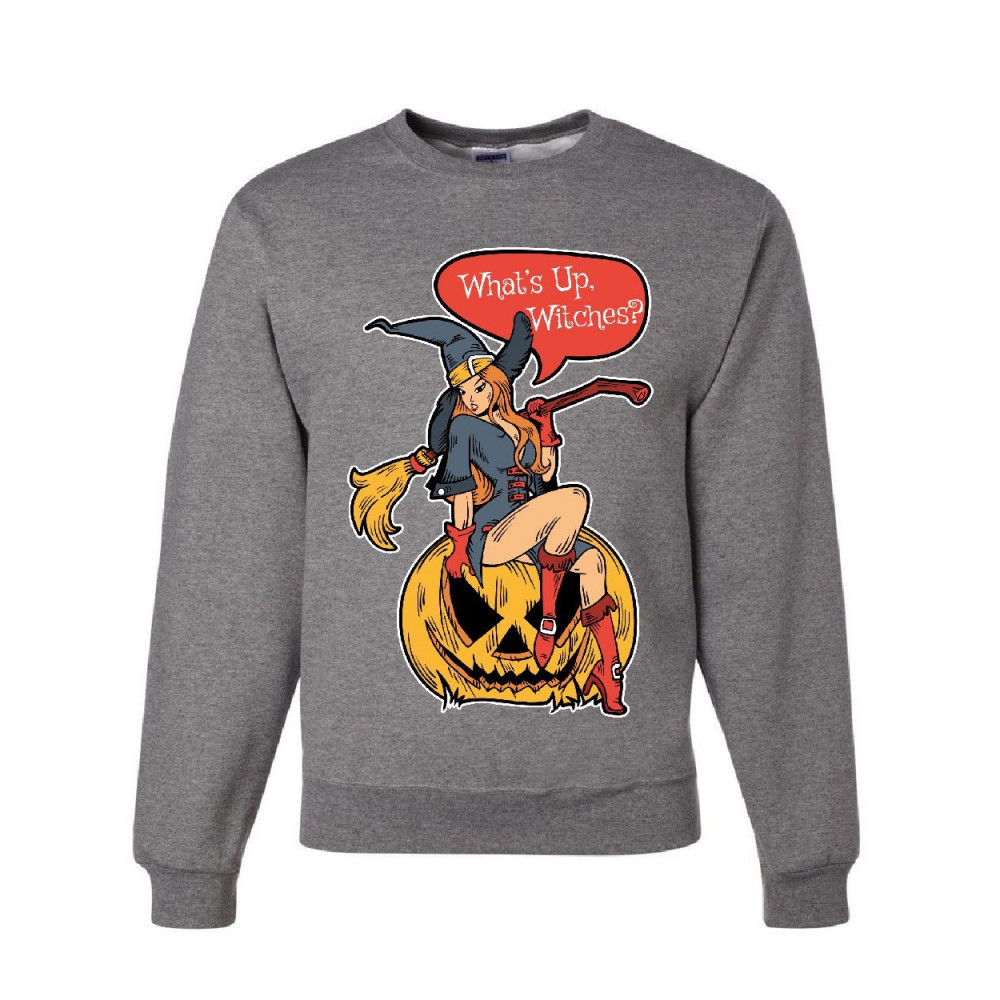 WHAT'S UP WITCHES? what's up witches sweatshirt halloween sexy witch jack-o-lantern sweater gray