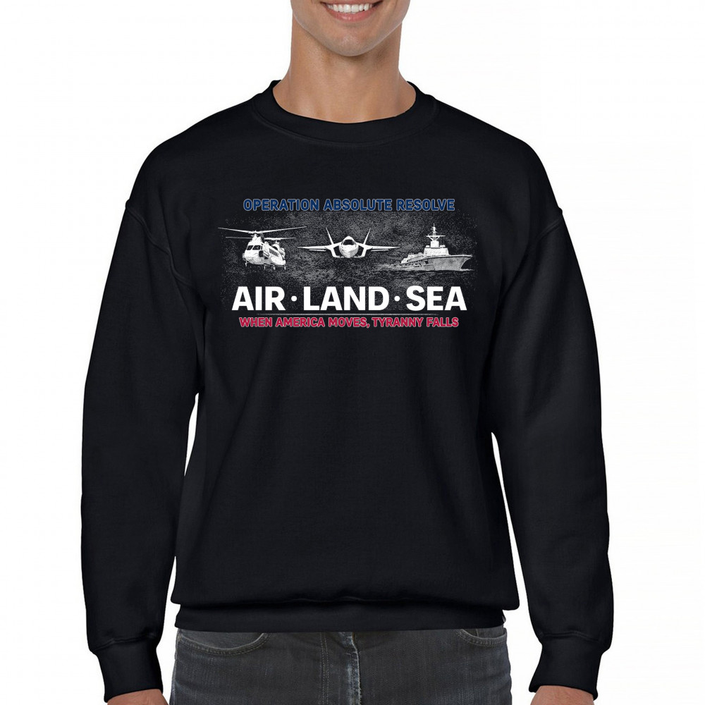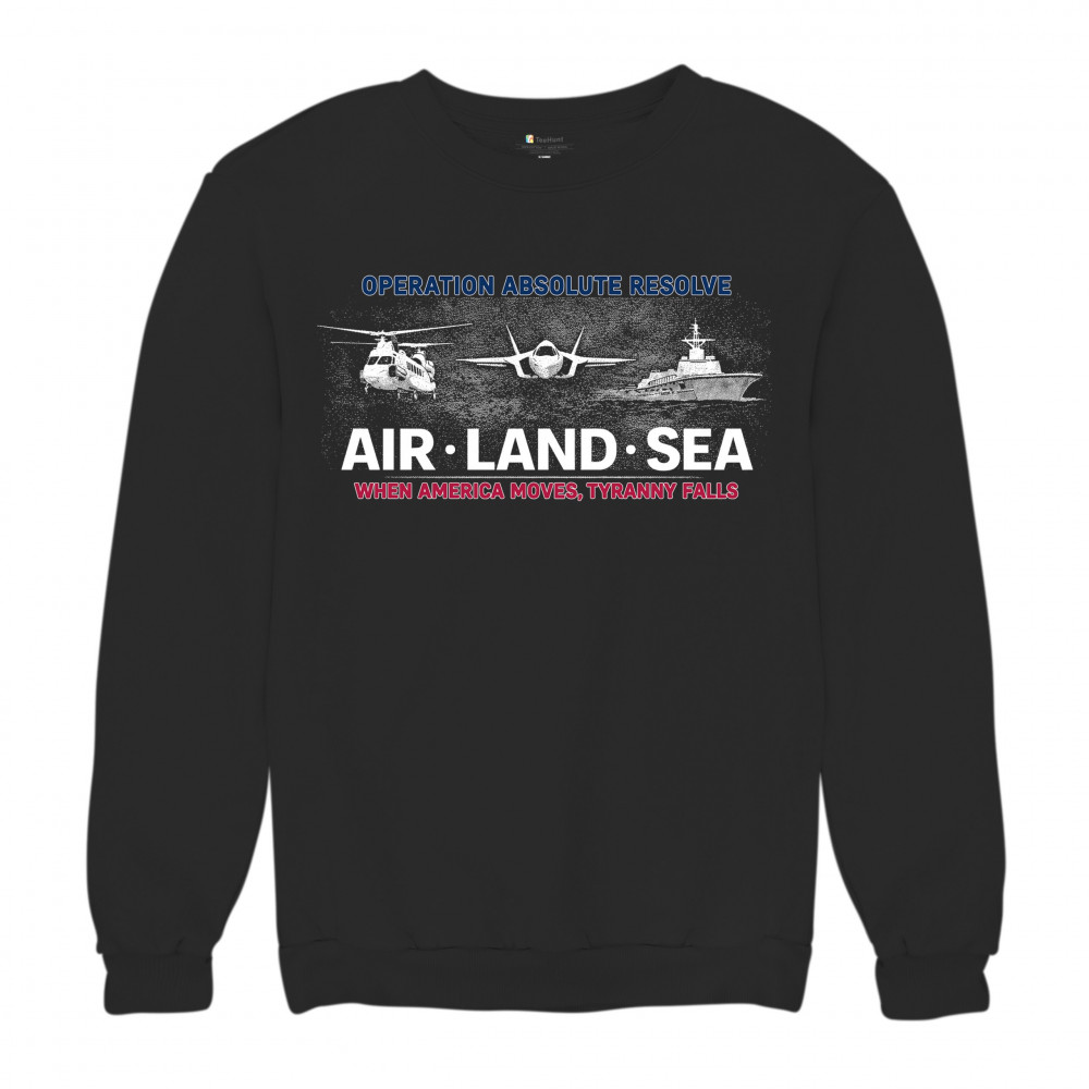WHEN AMERICA MOVES TYRANNY FALLS crewneck sweatshirt usa military venezuela black