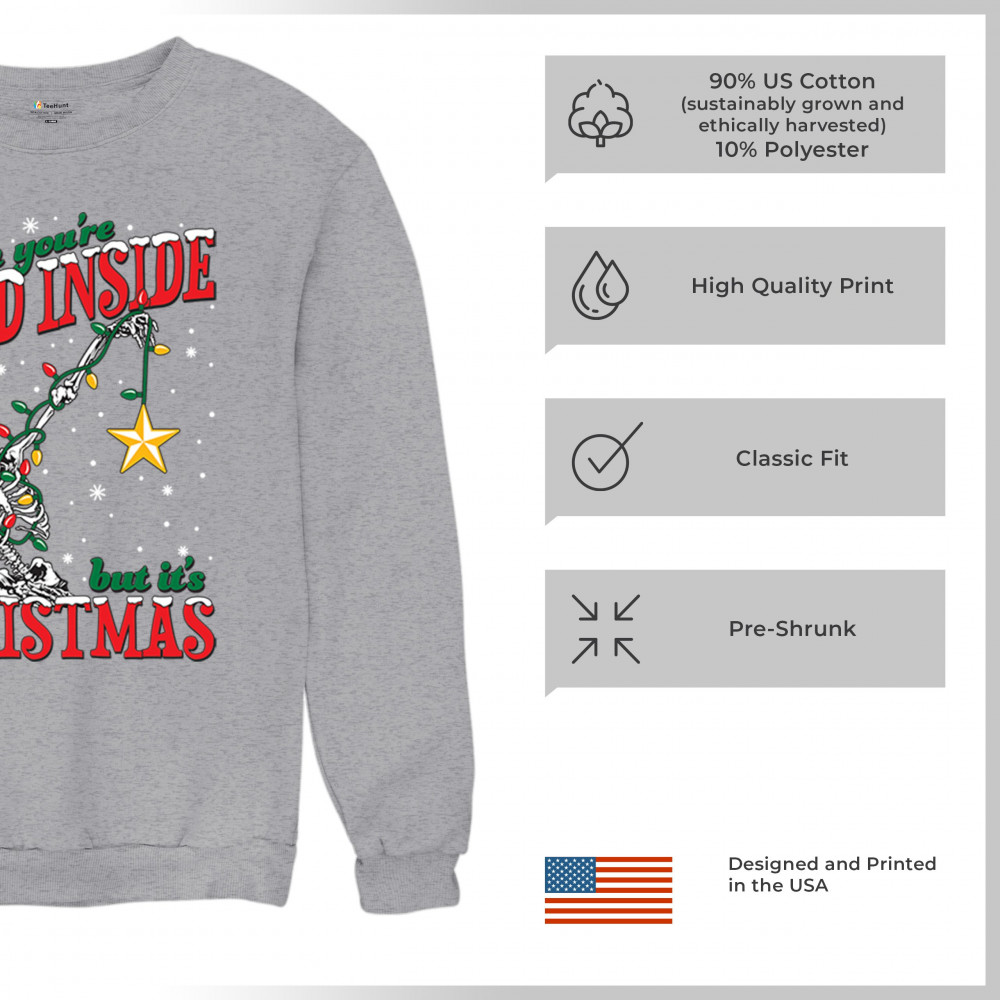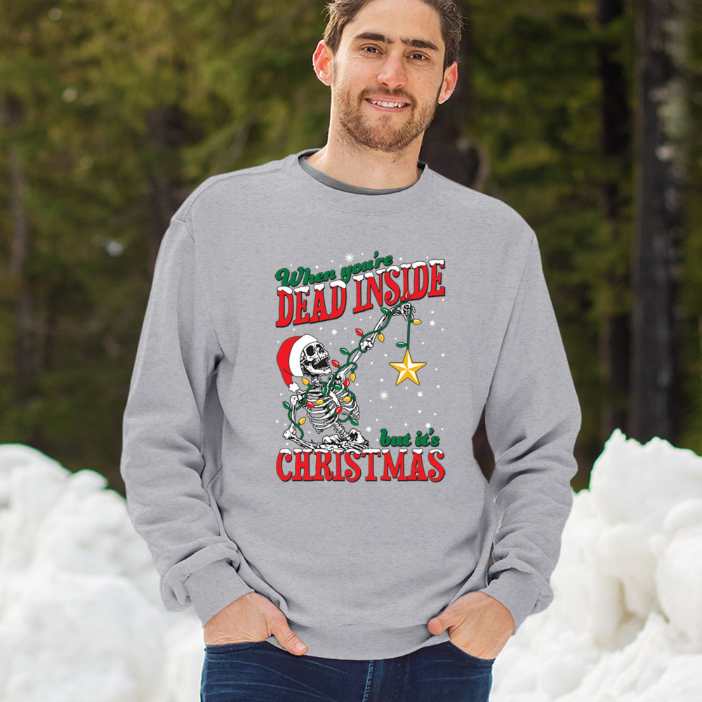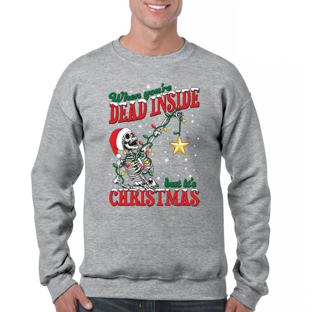 WHEN YOU'RE DEAD INSIDE BUT IT'S CHRISTMAS sweatshirt skeleton santa crewneck gray