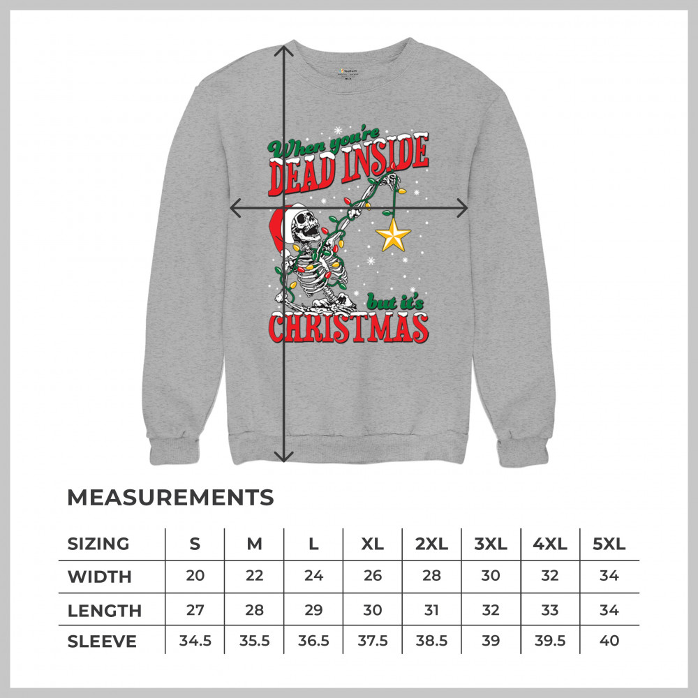 Bring humor and uniqueness to your holiday wardrobe with the "When You're Dead Inside But It's Christmas" design. This quirky creation features a skeleton embracing the festive spirit with colorful lights, a Santa hat, and a glowing star. Ideal for Secret Santa exchanges, ugly sweater parties, or anyone who loves blending a touch of humor with Christmas tradition. Celebrate the season in style with this unforgettable design.