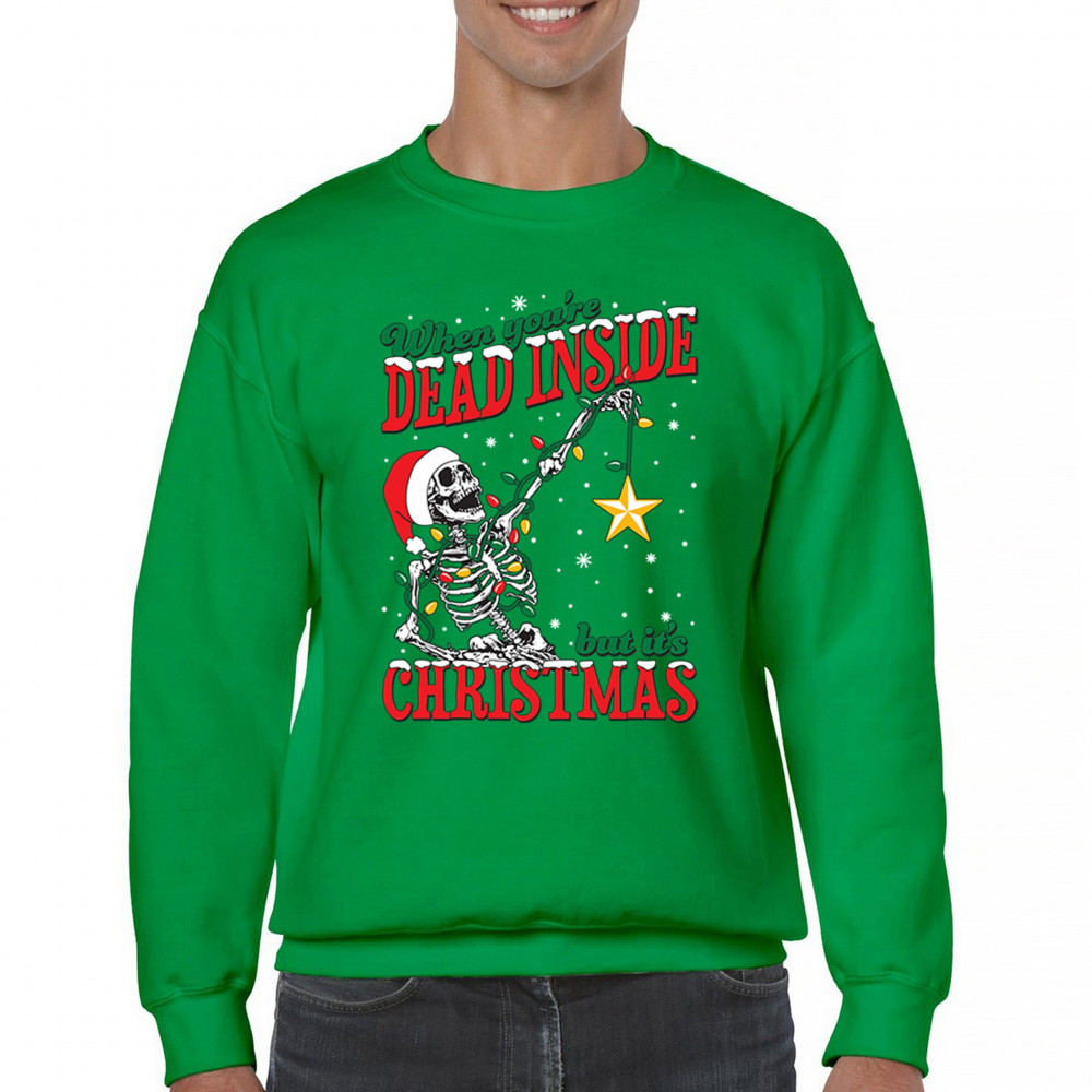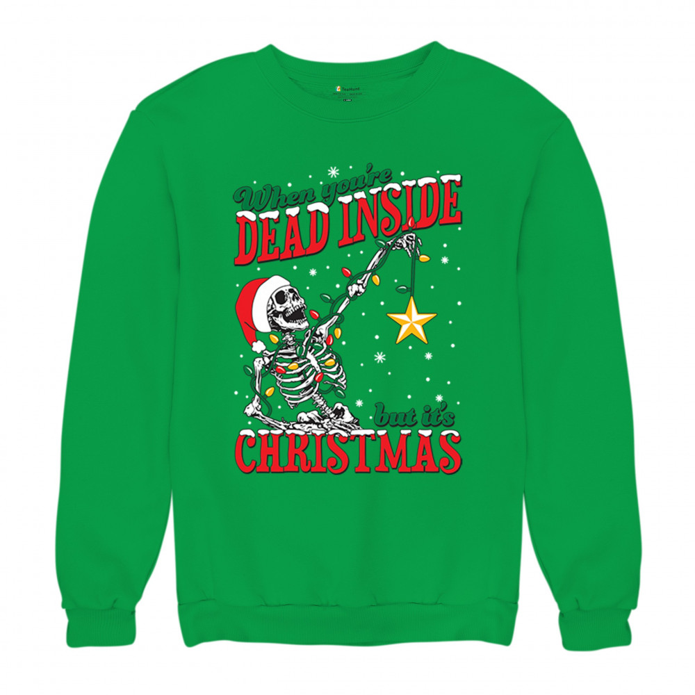 Celebrate humor and holiday spirit with the "When You're Dead Inside But It's Christmas" skeleton design. Perfect for parties and unique gifts.