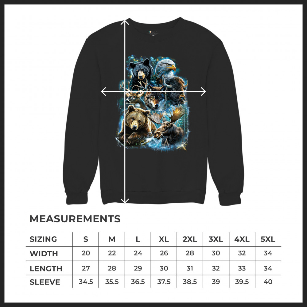 Celebrate the untamed beauty of the wilderness with this powerful design showcasing North America’s most iconic animals—moose, wolf, grizzly, black bear, bison, eagle, and deer. Packed with forest energy and rich detail, this piece honors rugged mountain life, animal strength, and a deep respect for wild nature.
