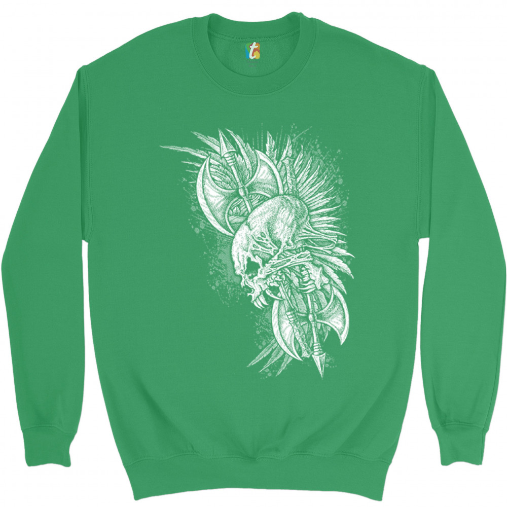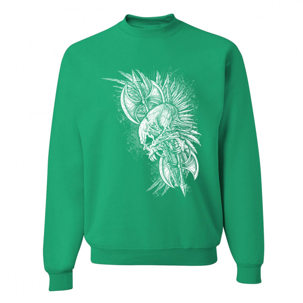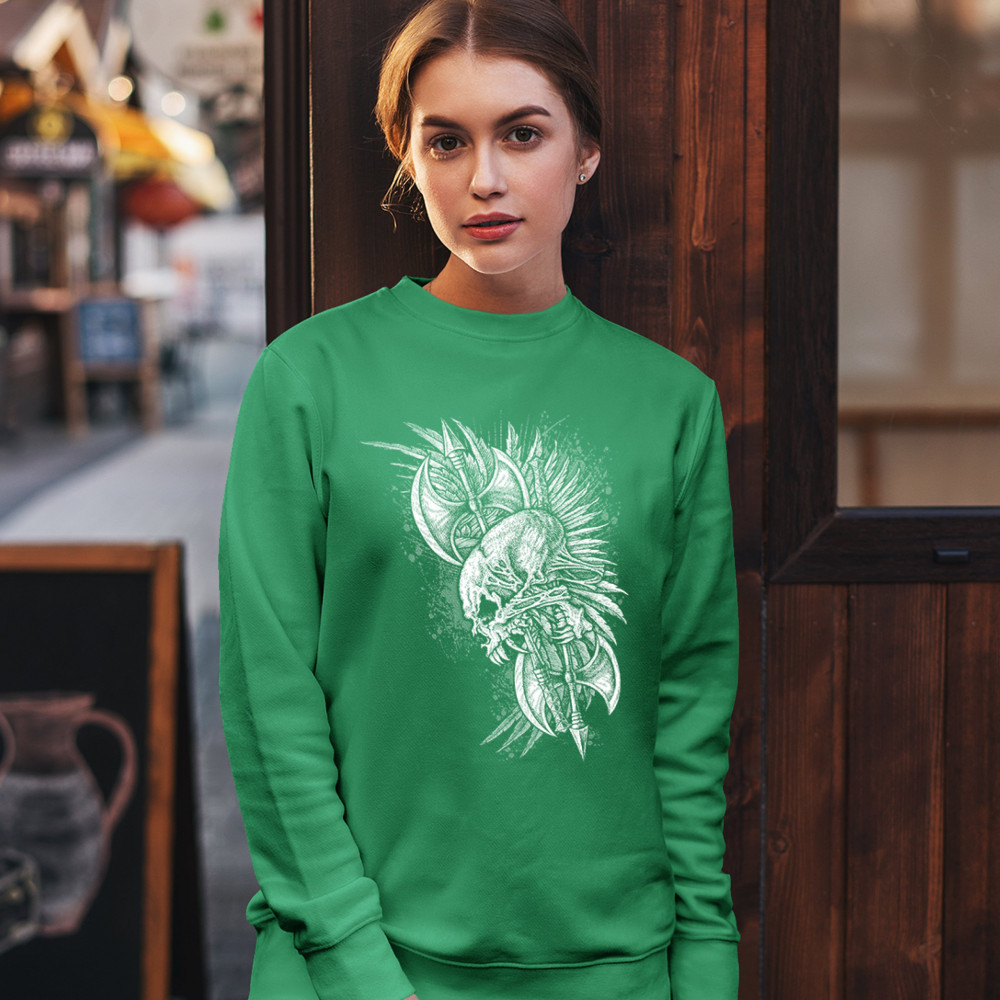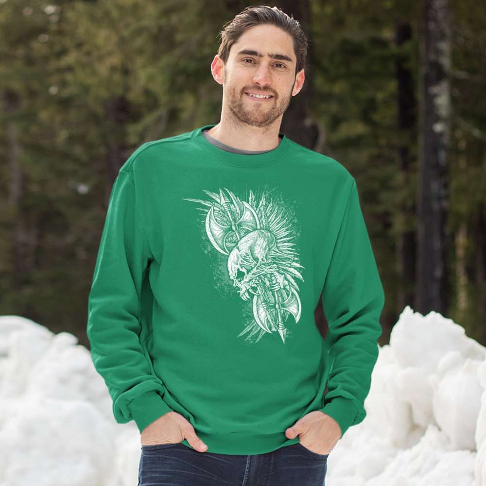 WINGED SKULL sweatshirt viking warrior skeleton labrys axe gothic crewneck green