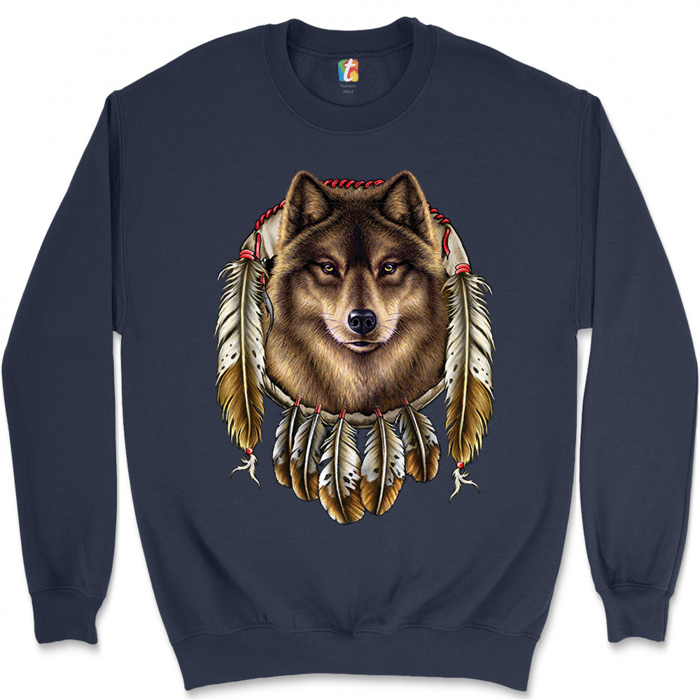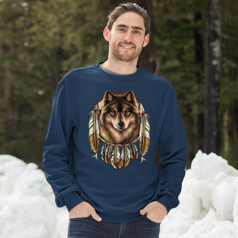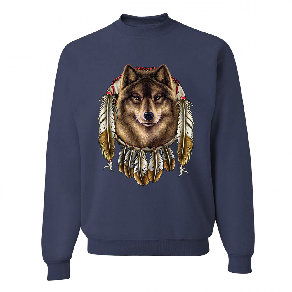 WOLF SPIRIT sweatshirt native american dreamcatcher indigenous crewneck navy blue