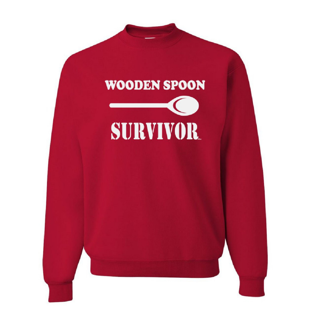 WOODEN SPOON SURVIVOR crew neck sweatshirt funny college humor red