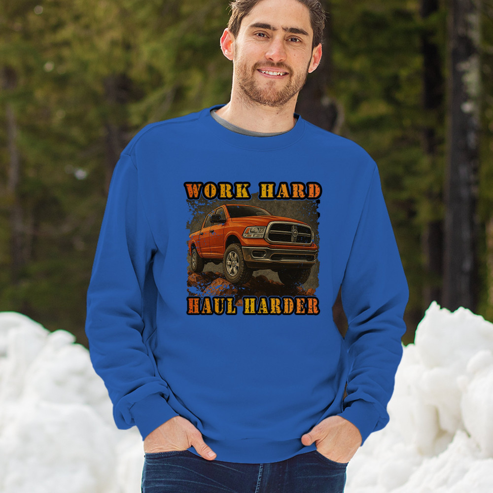 Built for those who know what it means to grind, this bold orange pickup design honors strength, power, and grit. Featuring the “Work Hard Haul Harder†motto, it’s made for job site heroes, off-road warriors, and 4x4 enthusiasts who drive machines that never quit. Show your pride in performance and purpose.
