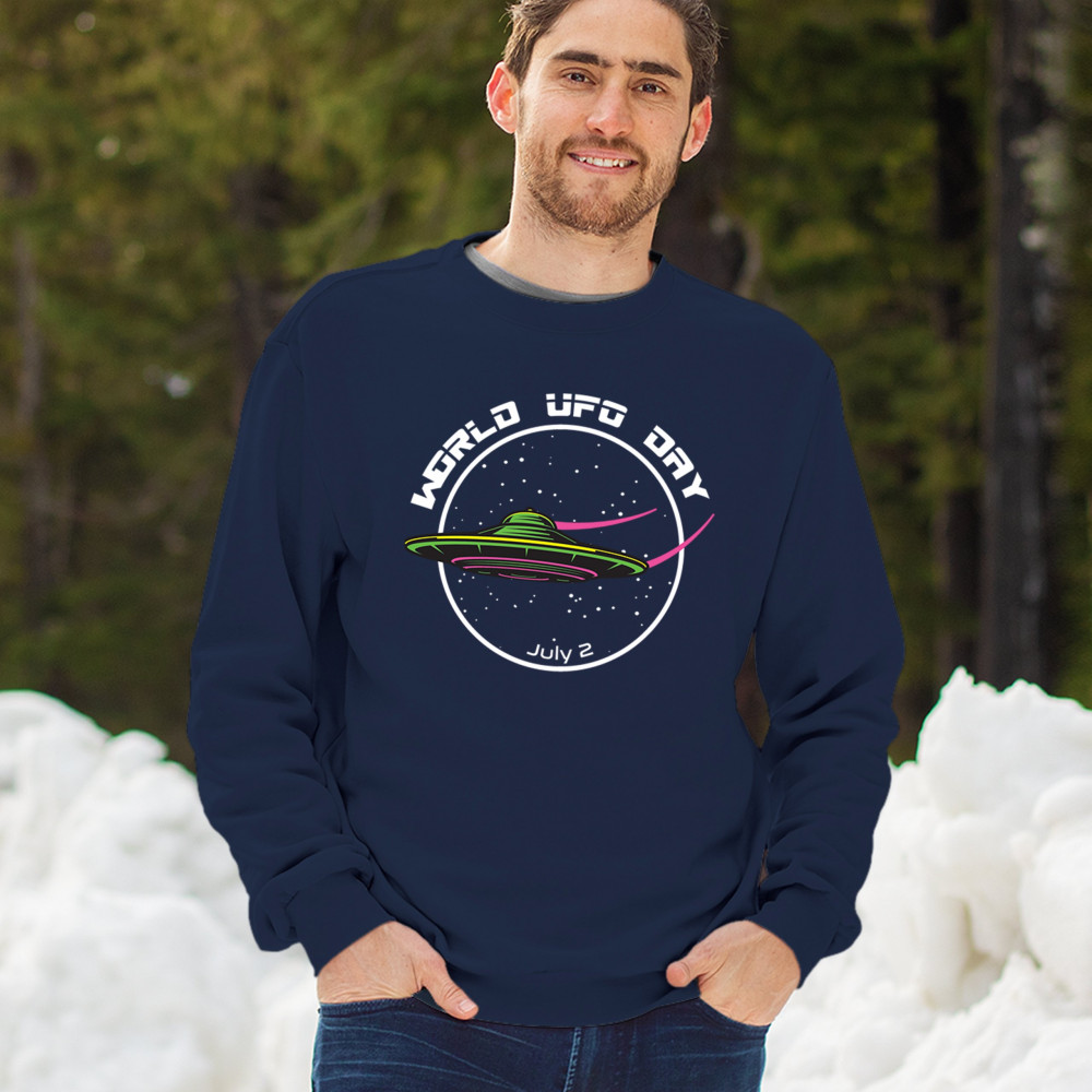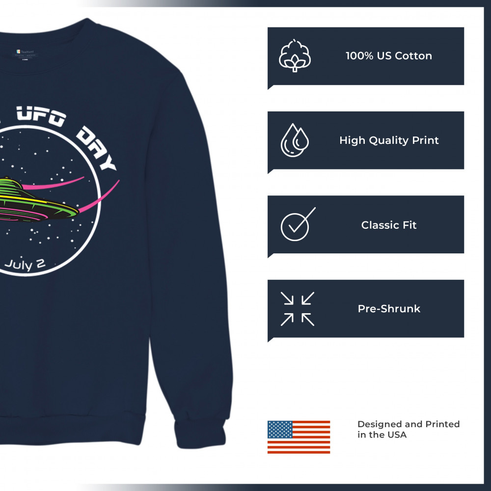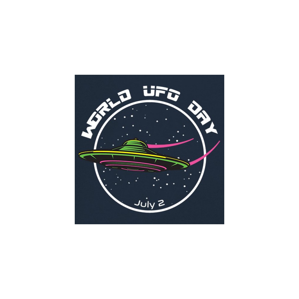 Celebrate World UFO Day on July 2nd with a captivating design featuring a sleek UFO against a starry sky. Perfect for space enthusiasts and UFO lovers.