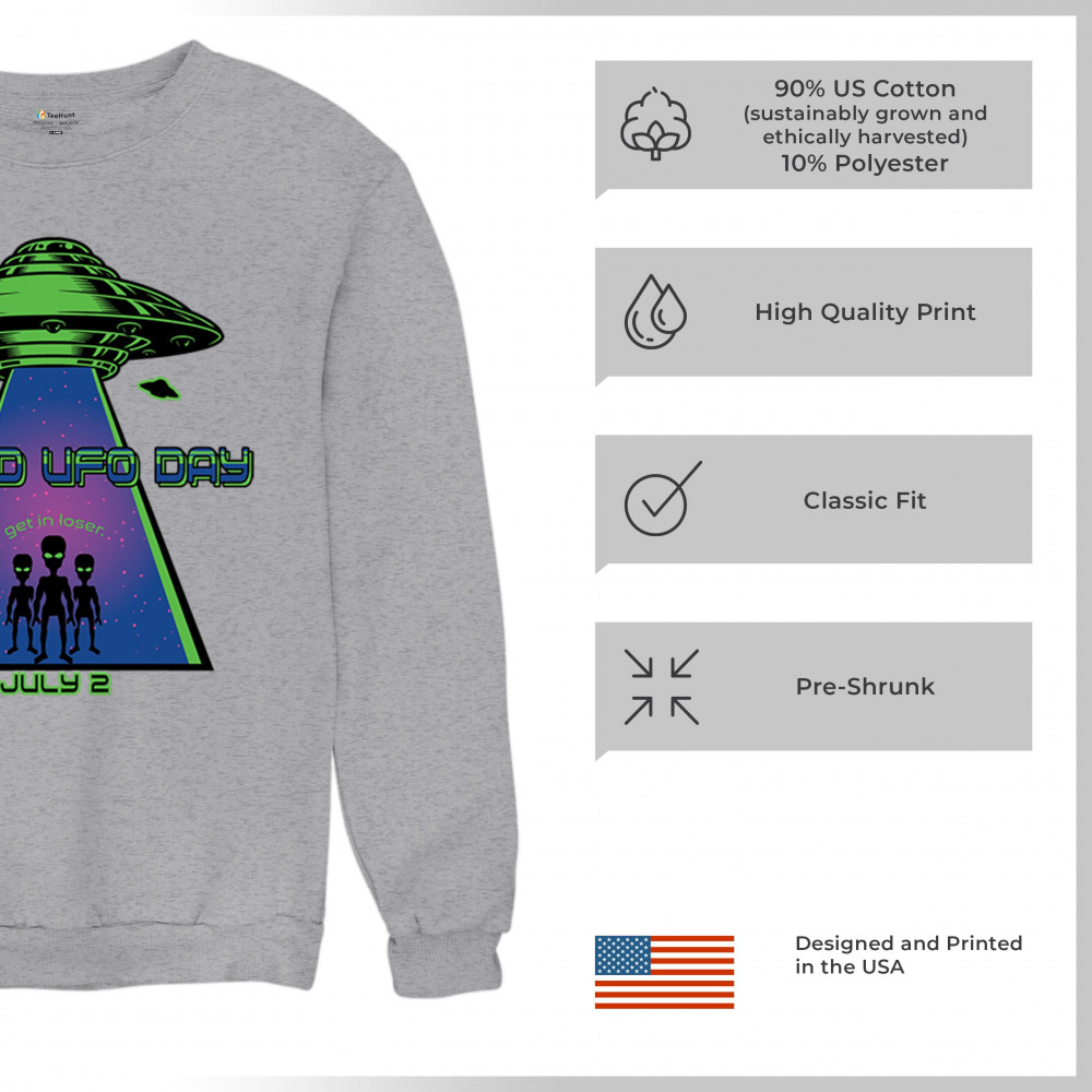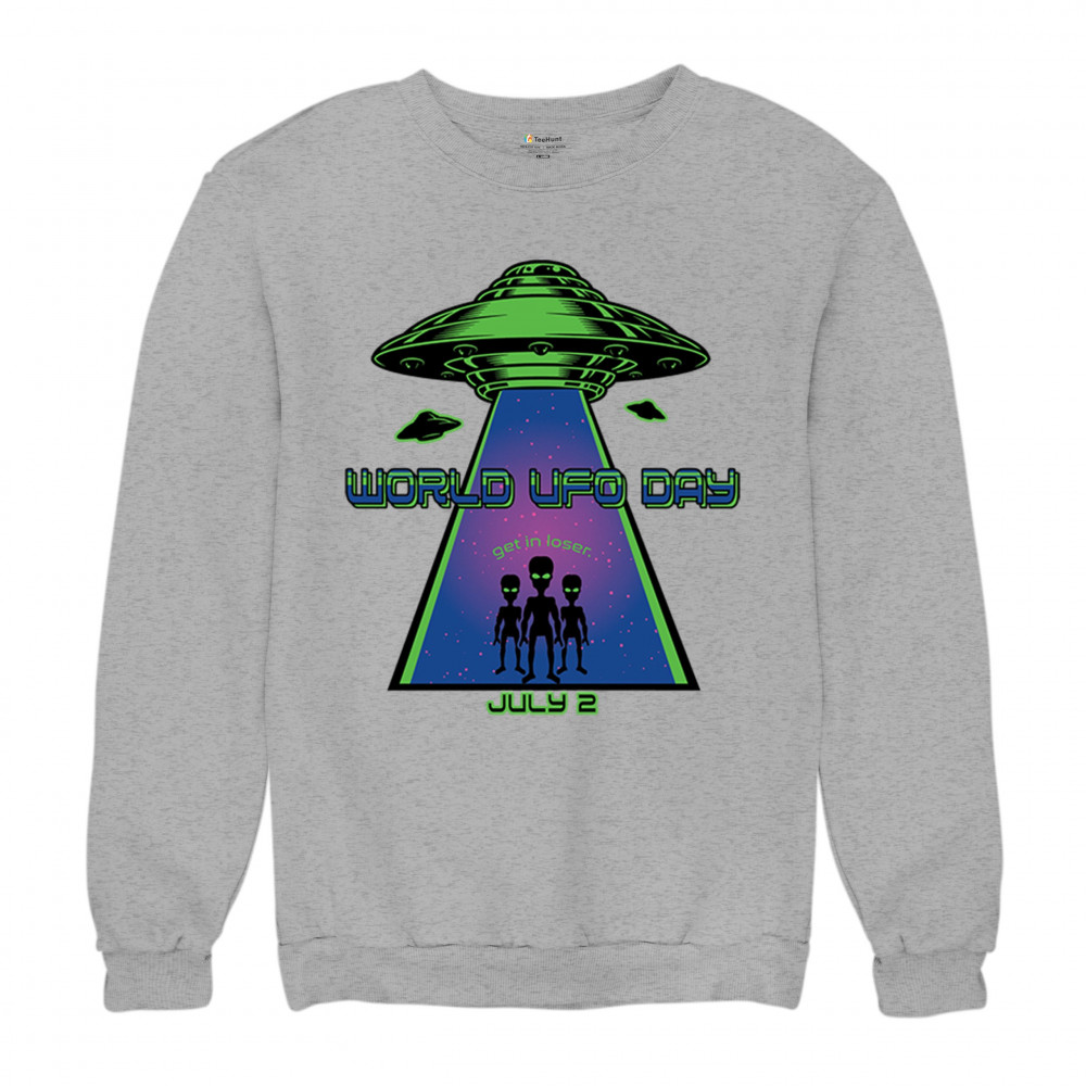 Join the celebration of World UFO Day with this unique design, featuring a detailed UFO beaming up three cheerful aliens with the phrase "Get in, loser." Perfect for those who are fascinated by the unknown and have a sense of humor about extraterrestrial life. Whether you're attending a UFO event, meeting with fellow enthusiasts, or just want to express your quirky style, this design is a must-have. Embrace the spirit of curiosity and fun with this eye-catching design for July 2nd.