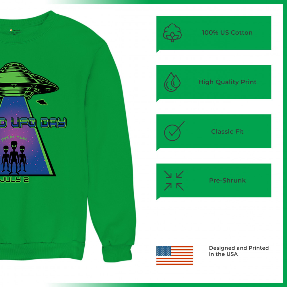 Join the celebration of World UFO Day with this unique design, featuring a detailed UFO beaming up three cheerful aliens with the phrase "Get in, loser." Perfect for those who are fascinated by the unknown and have a sense of humor about extraterrestrial life. Whether you're attending a UFO event, meeting with fellow enthusiasts, or just want to express your quirky style, this design is a must-have. Embrace the spirit of curiosity and fun with this eye-catching design for July 2nd.