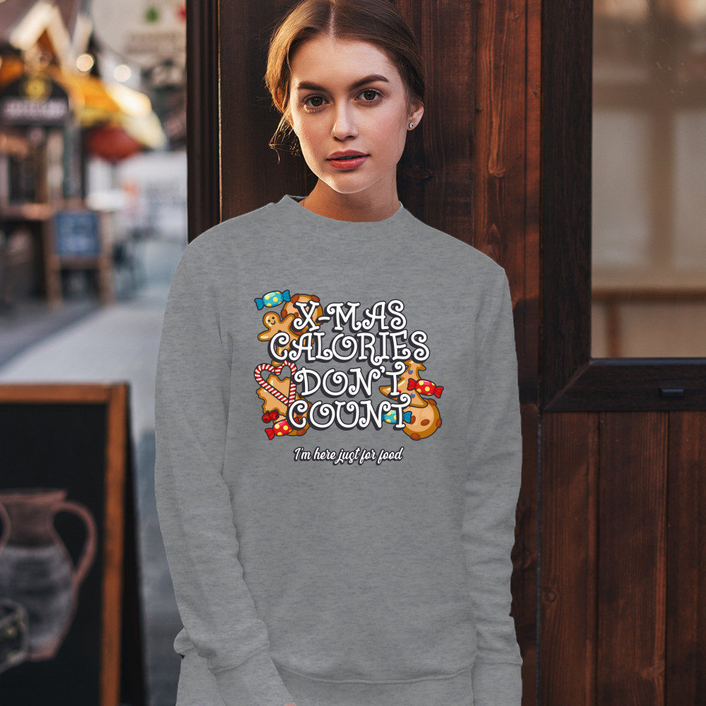 X-MAS CALORIES DON'T COUNT sweatshirt merry christmas naughty or nice crewneck gray