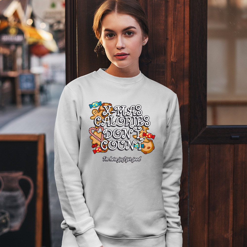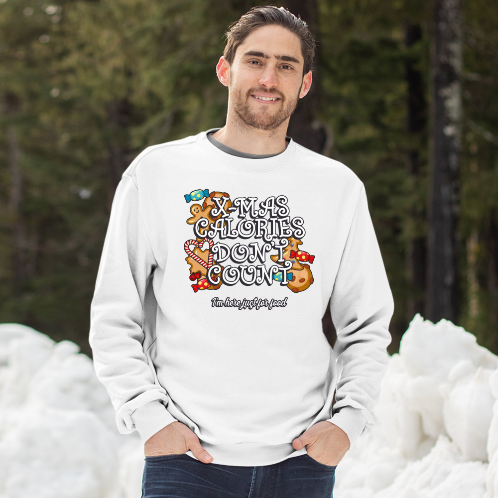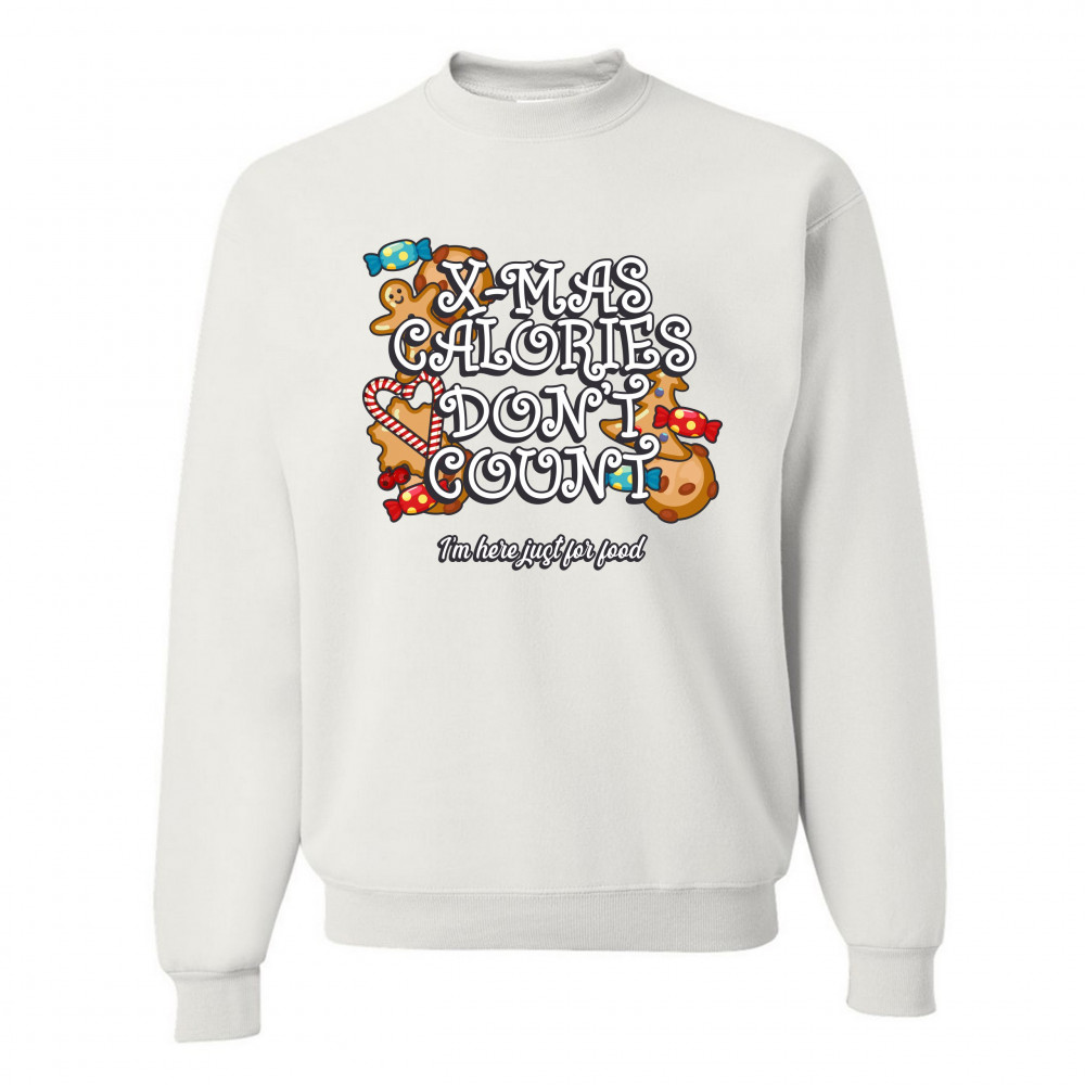 X-MAS CALORIES DON'T COUNT sweatshirt merry christmas naughty or nice crewneck white