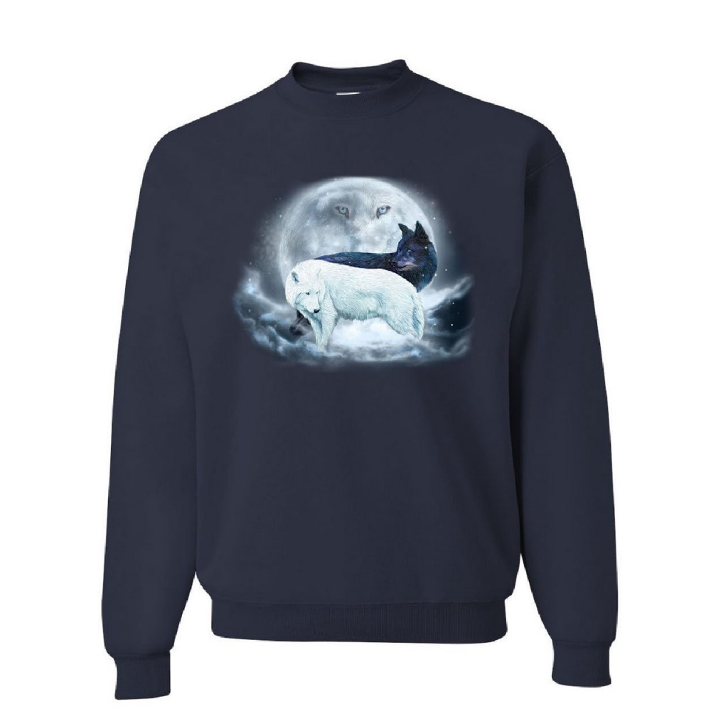 YIN & YANG WOLVES sweatshirt animals wildlife nature wolf pack moon sweater navy blue